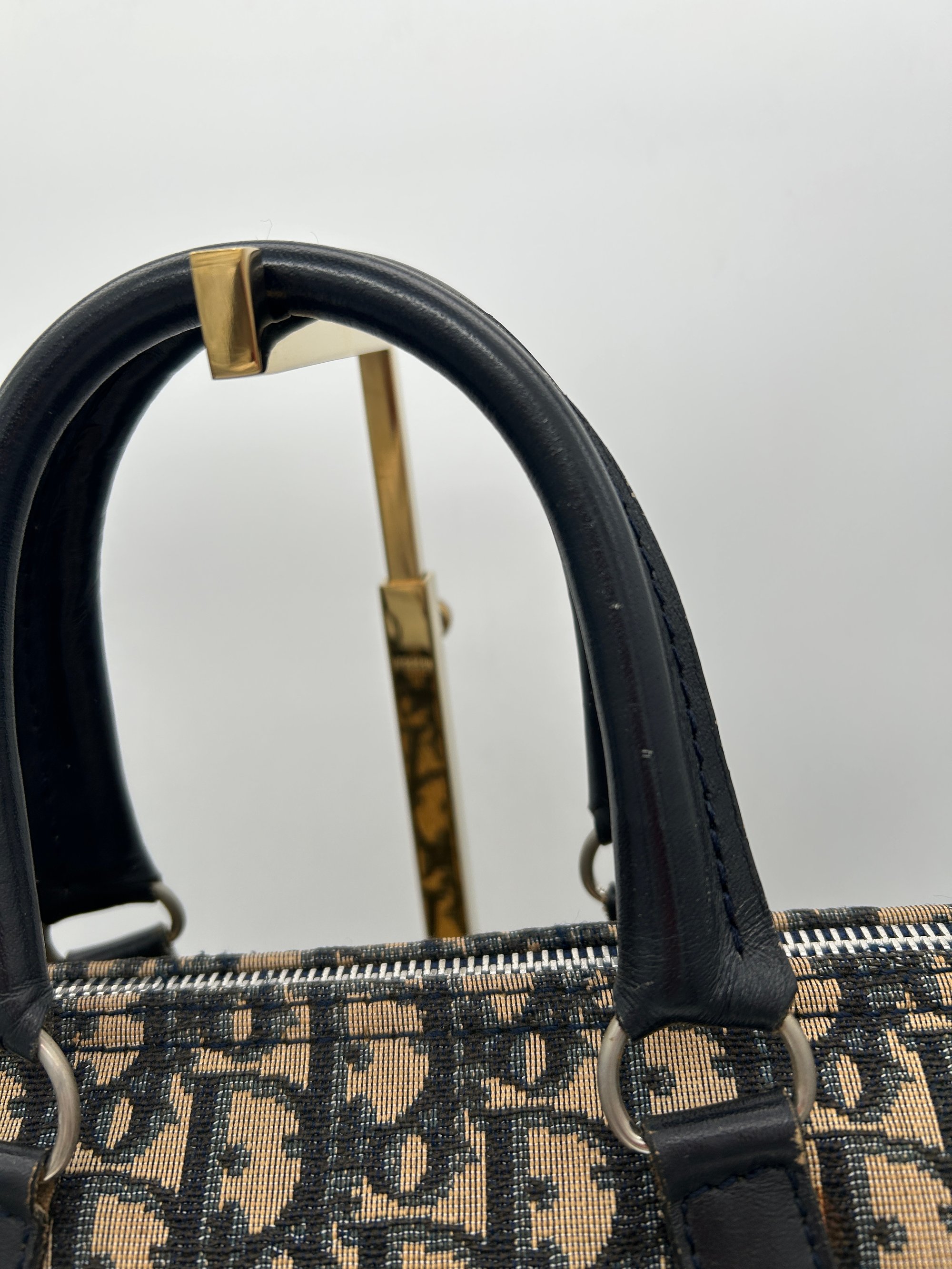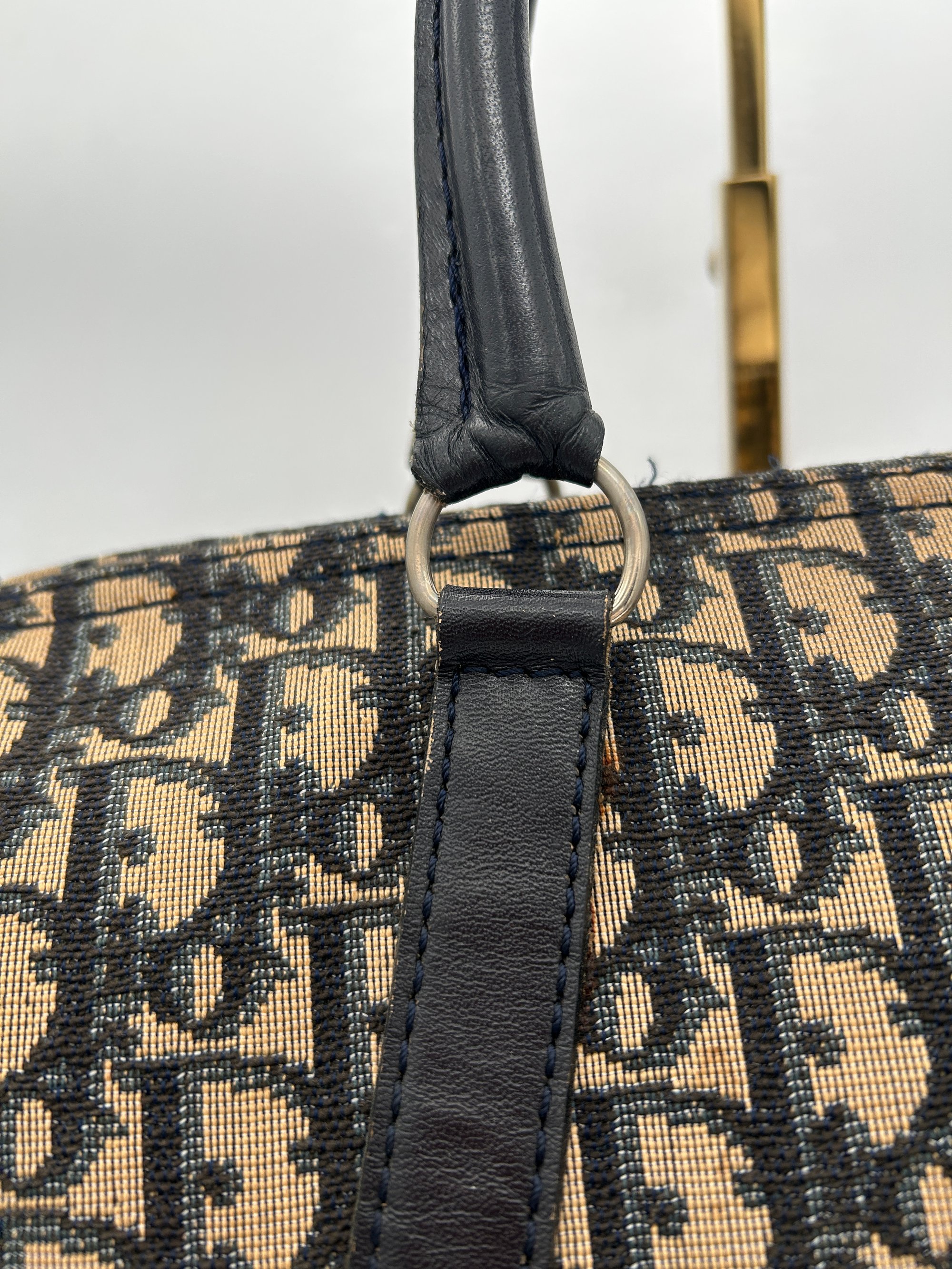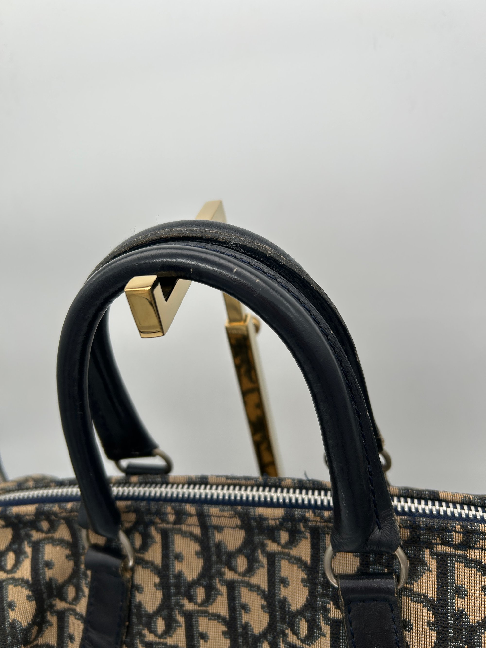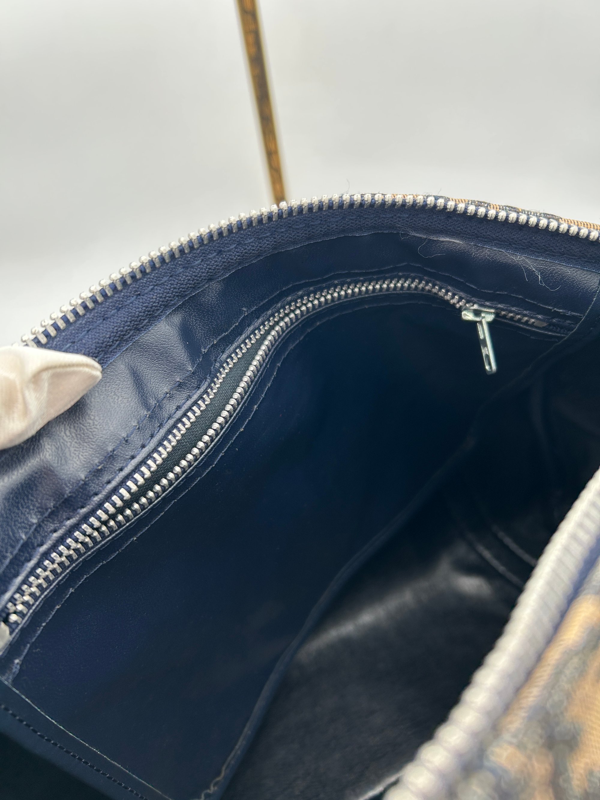 The leather handles & bottom corners have some scratches. The CD canvas has some minor staining. The inside is very clean and has no odour.