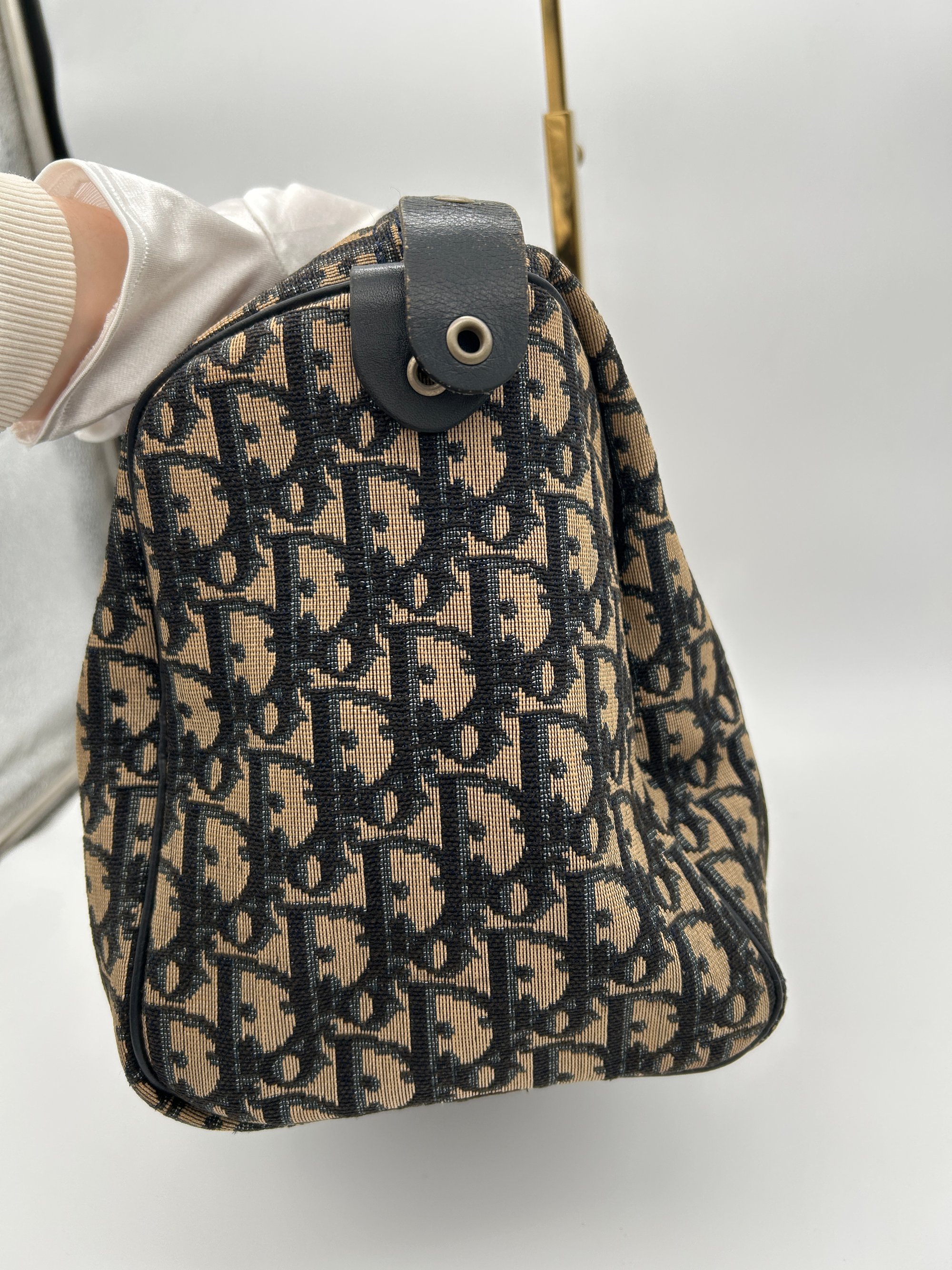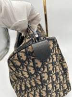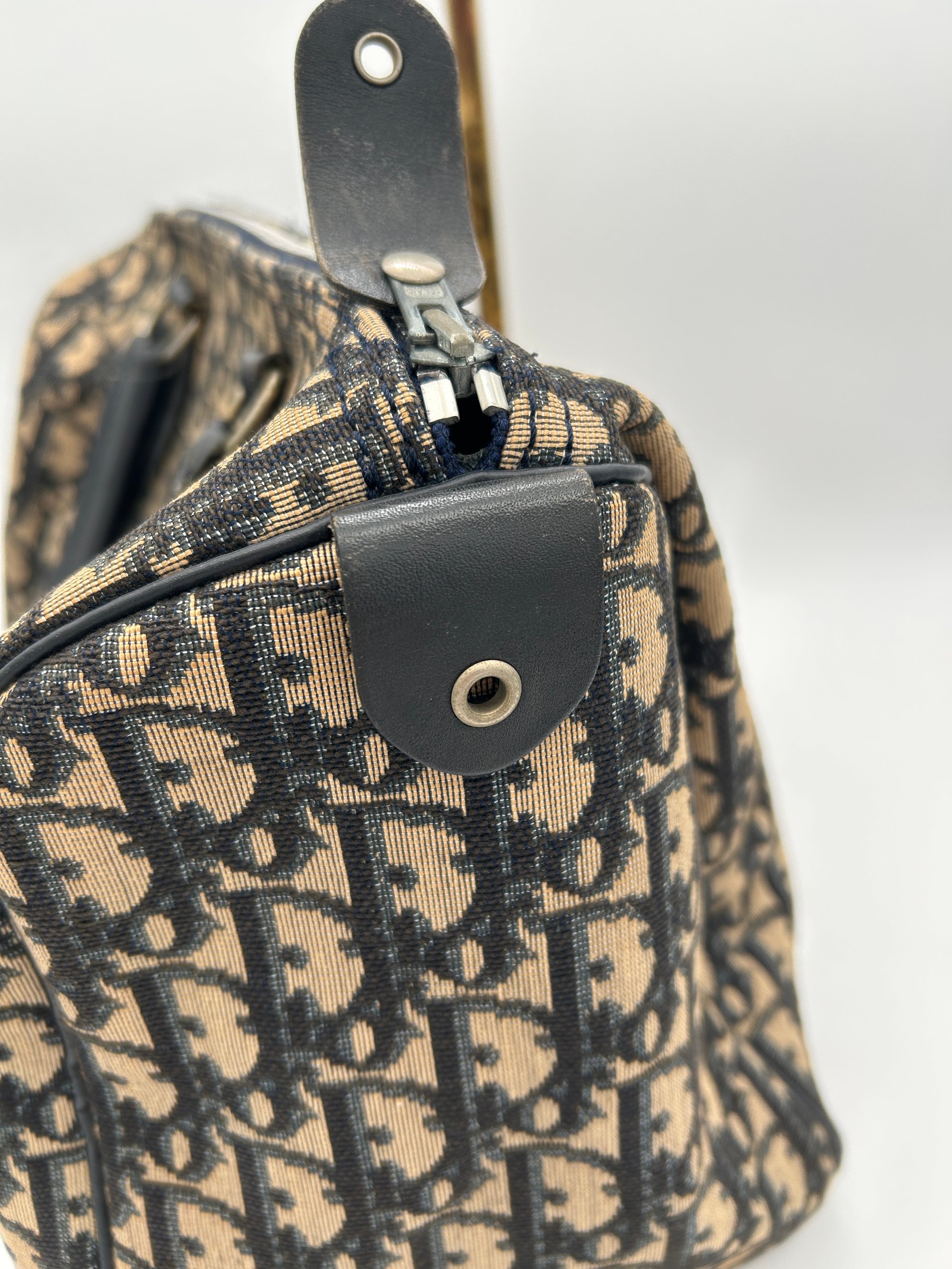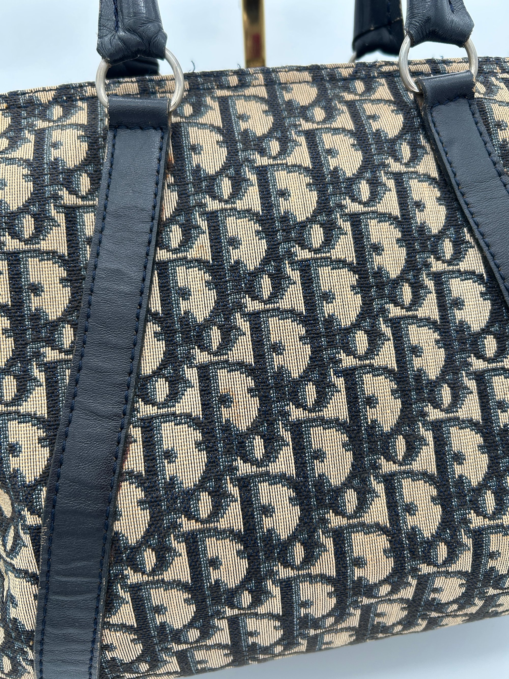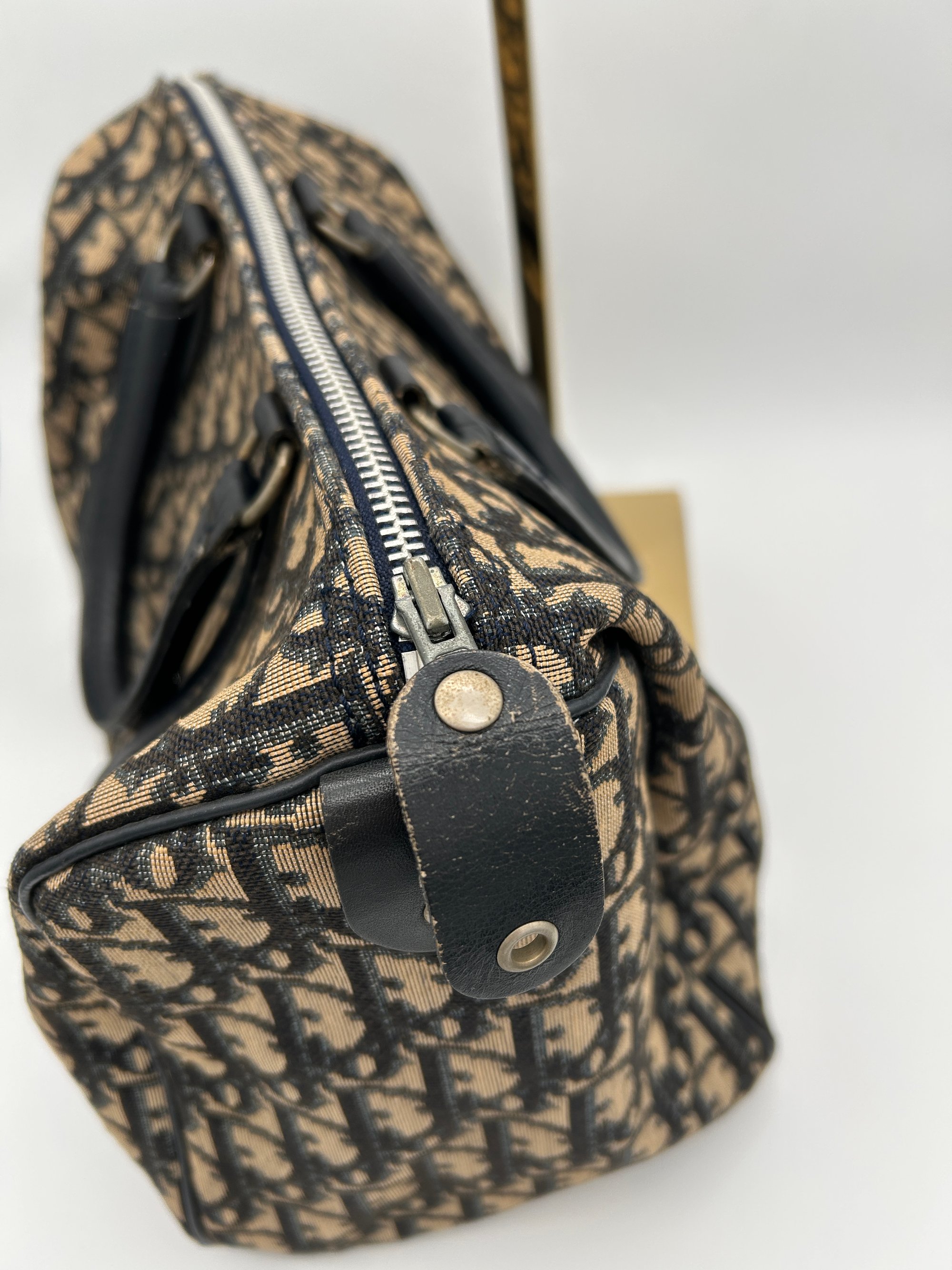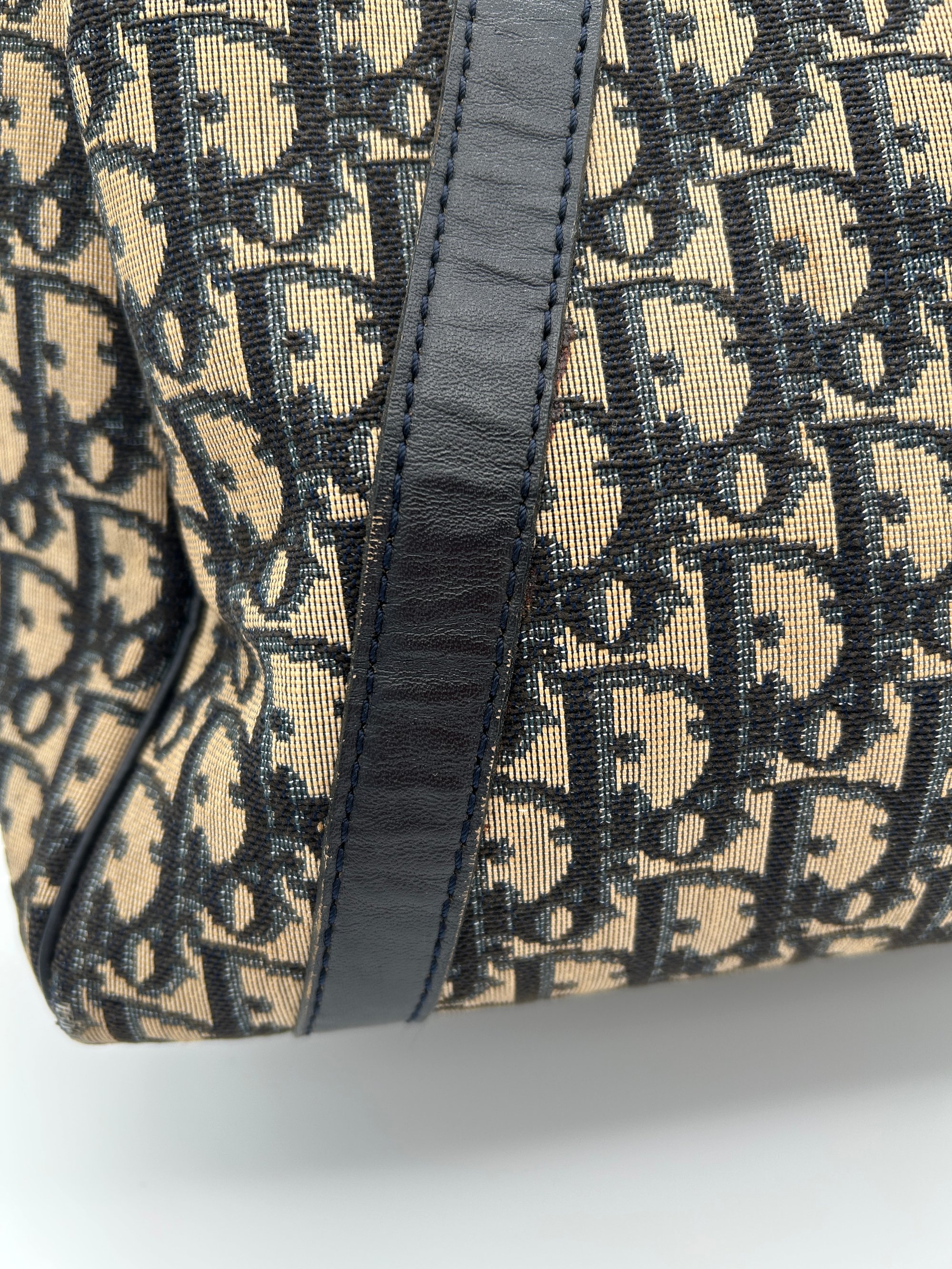 The leather handles & bottom corners have some scratches. The CD canvas has some minor staining. The inside is very clean and has no odour.