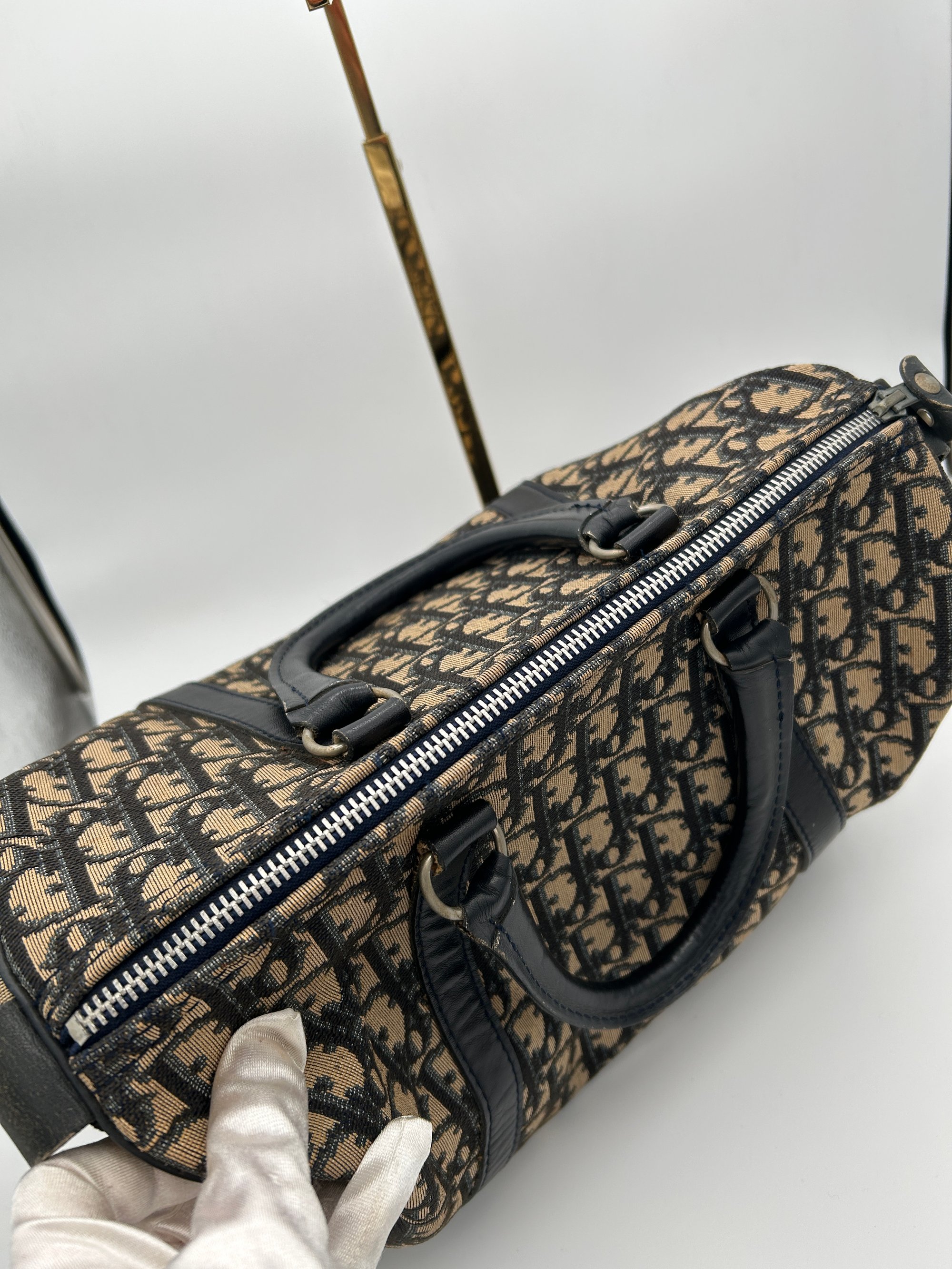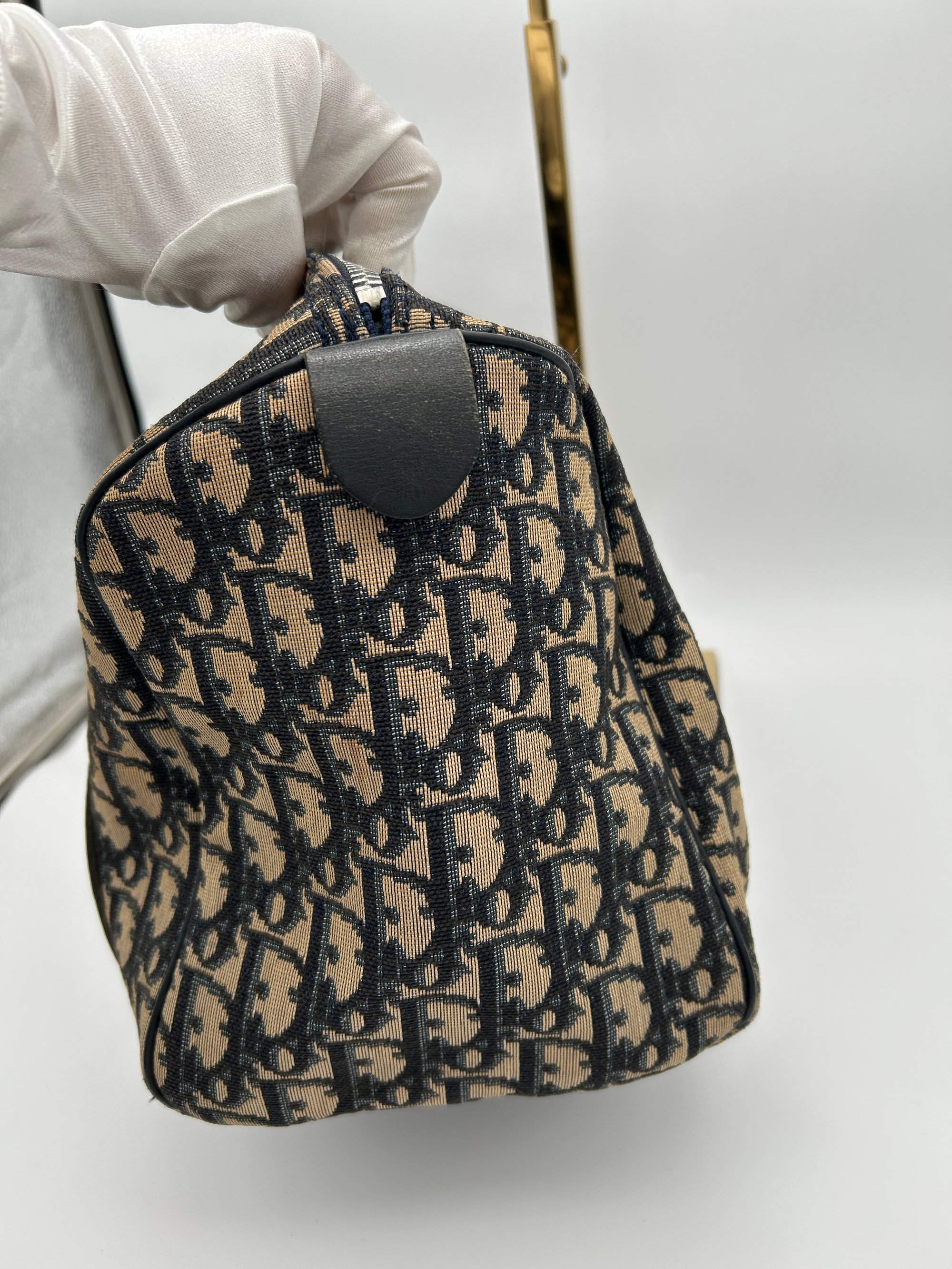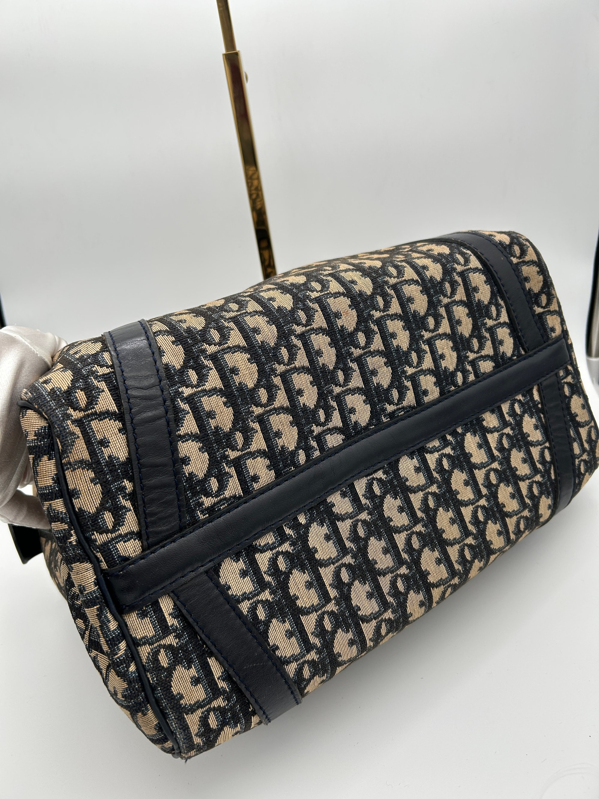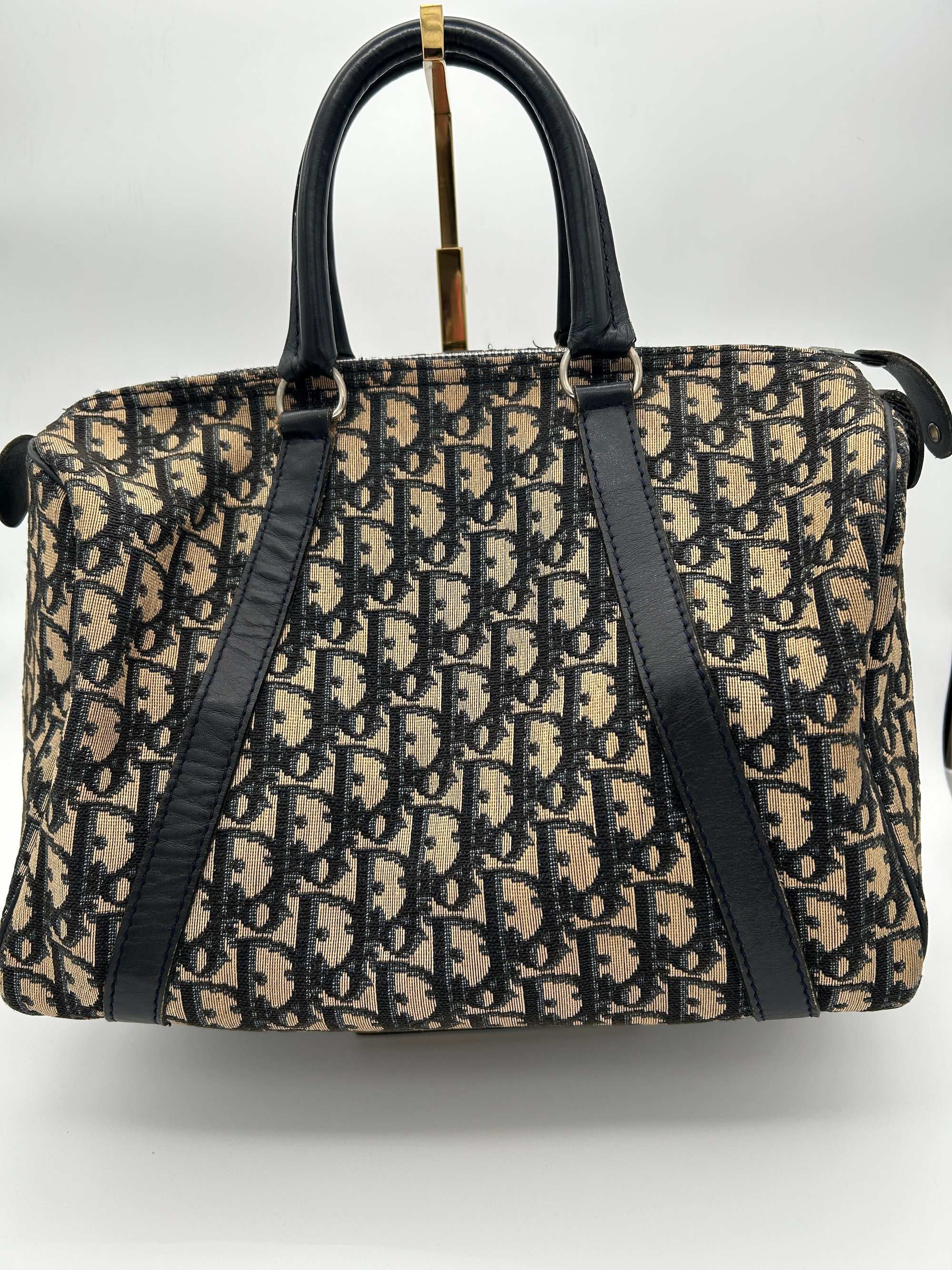 The leather handles & bottom corners have some scratches. The CD canvas has some minor staining. The inside is very clean and has no odour.