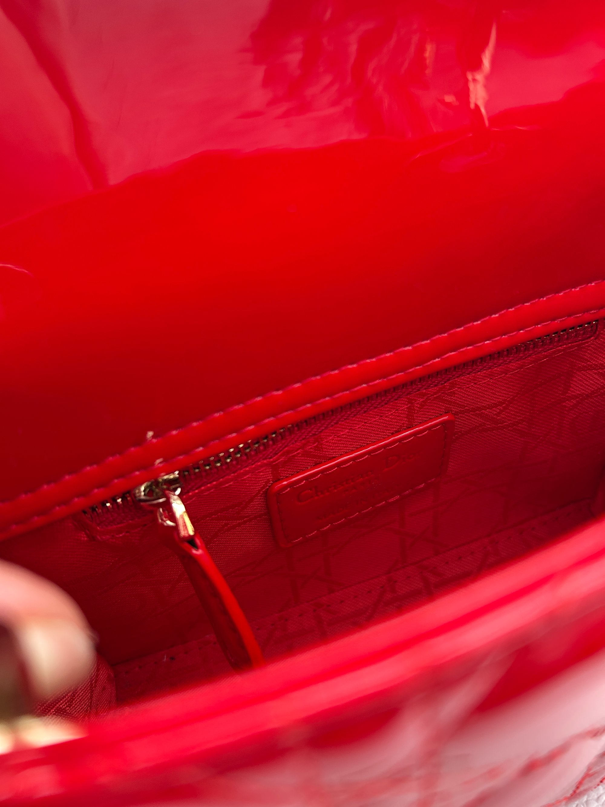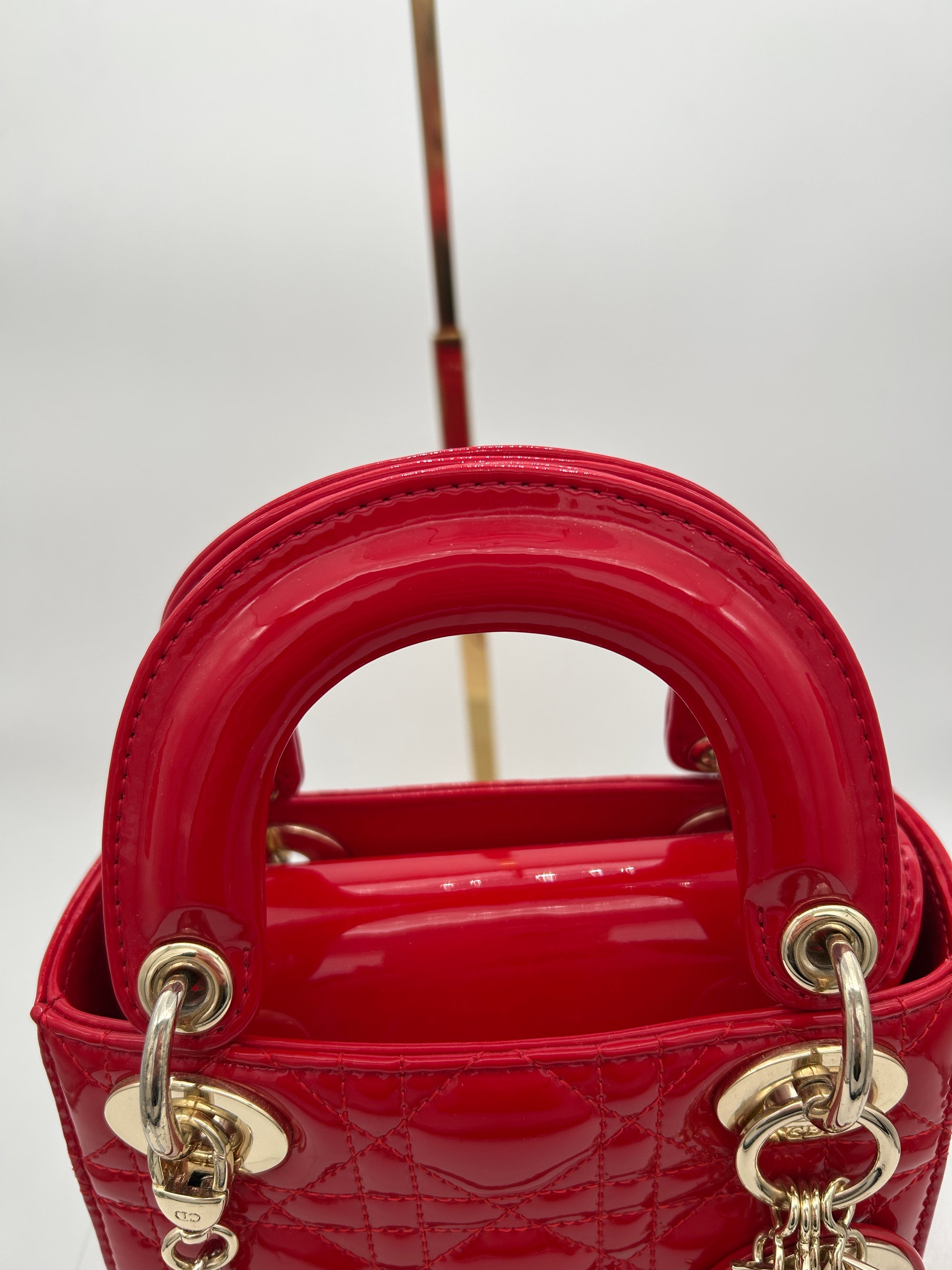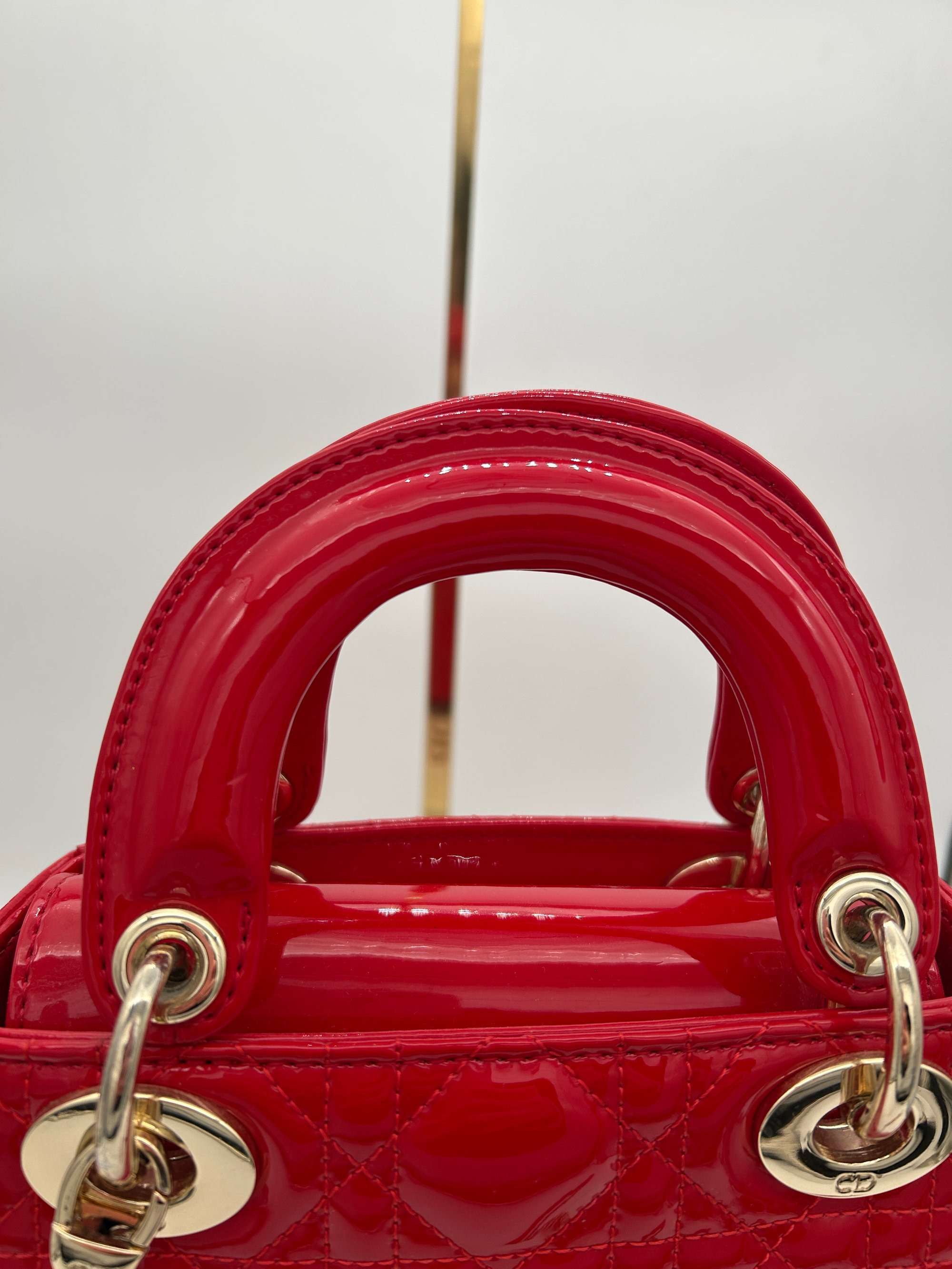 Christian Dior Mini Lady Dior Red Patent Cannage Calfskin Gold Hardware