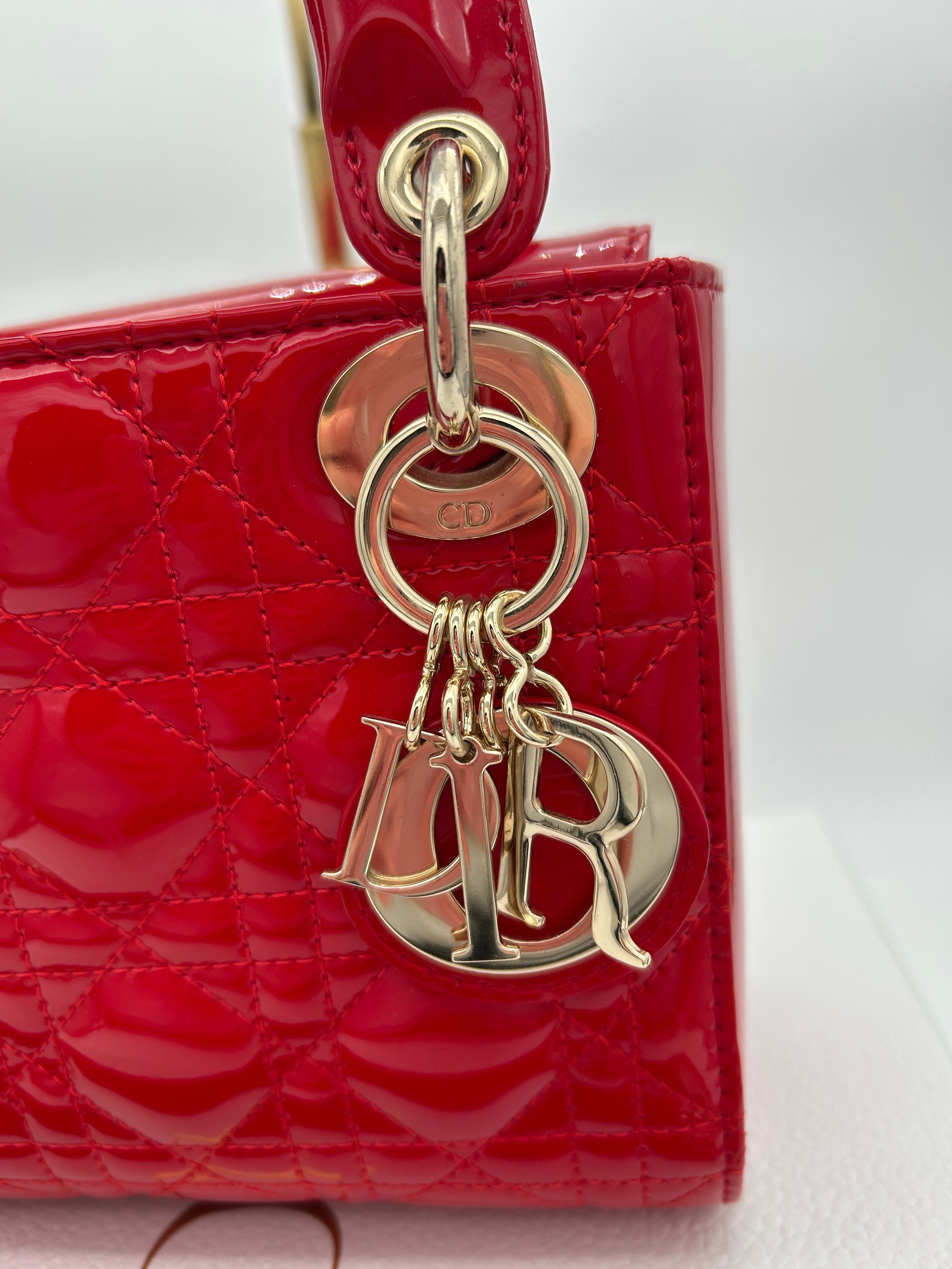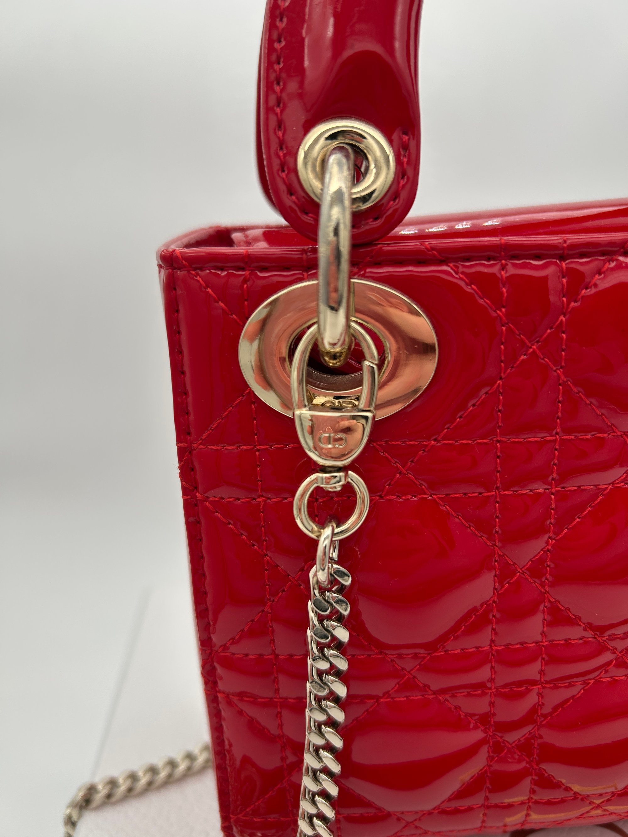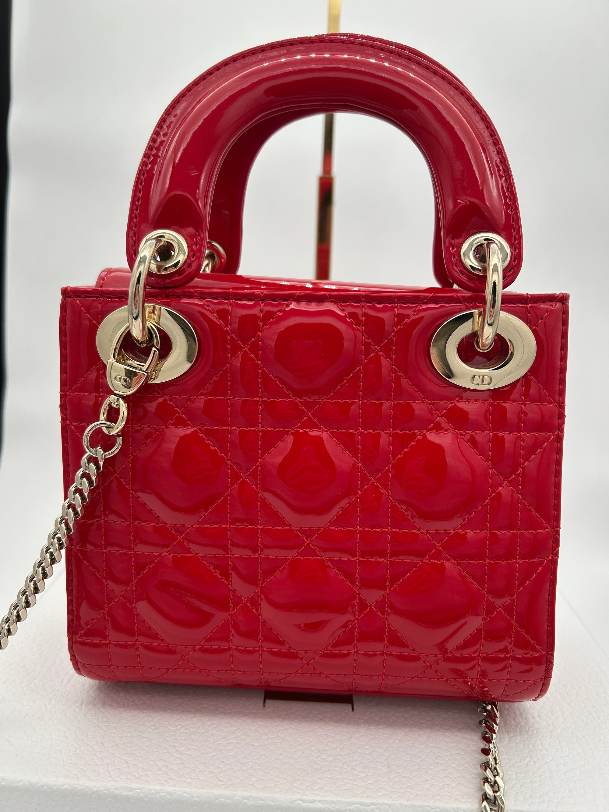 Christian Dior Mini Lady Dior Red Patent Cannage Calfskin Gold Hardware