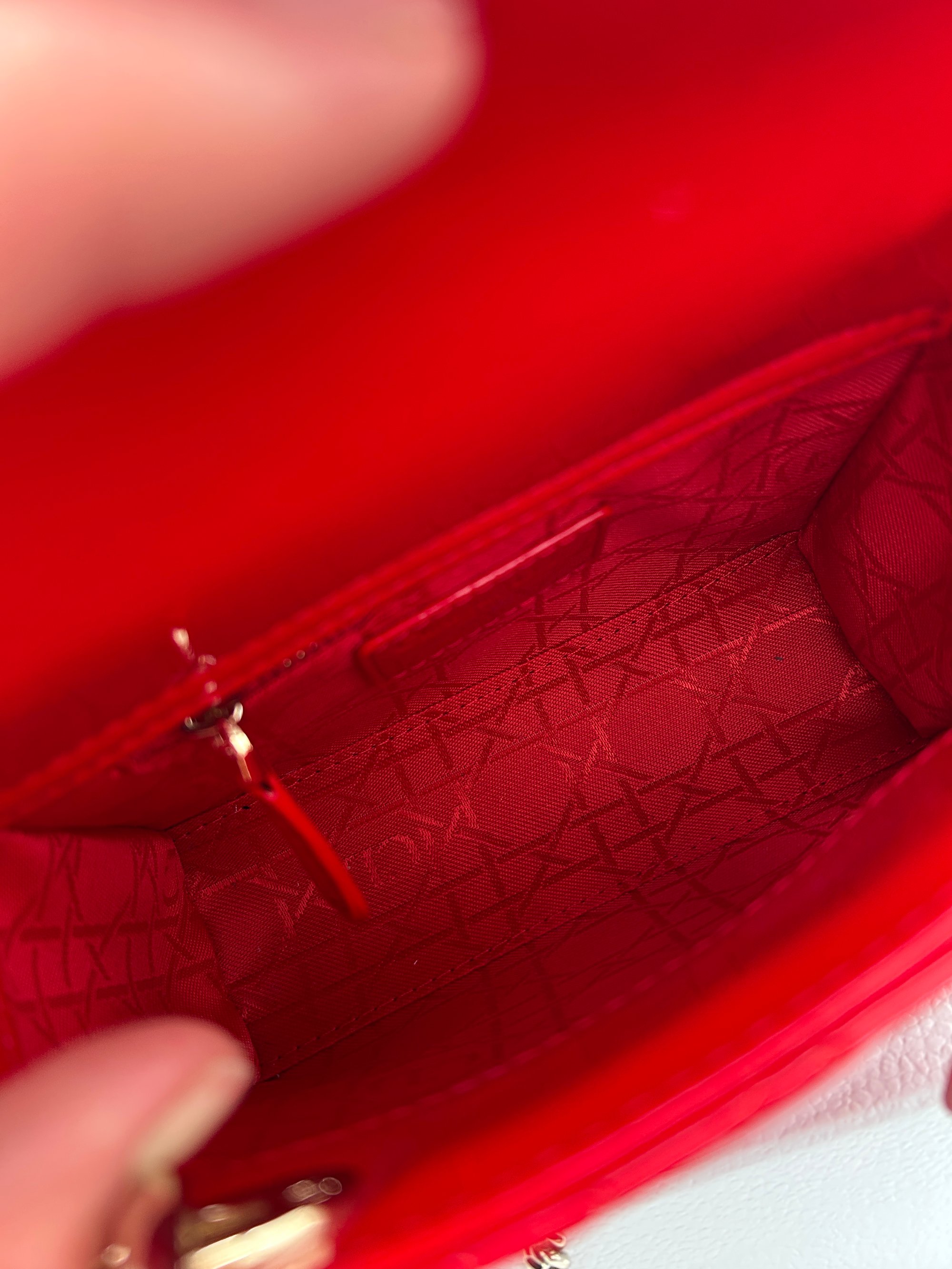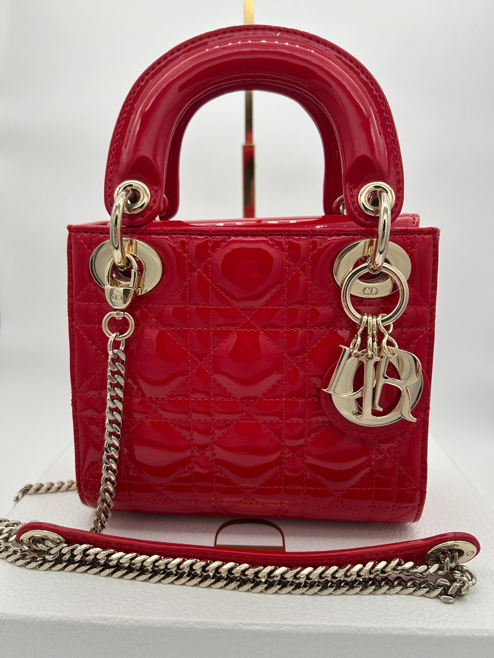 Christian Dior Mini Lady Dior Red Patent Cannage Calfskin Bag