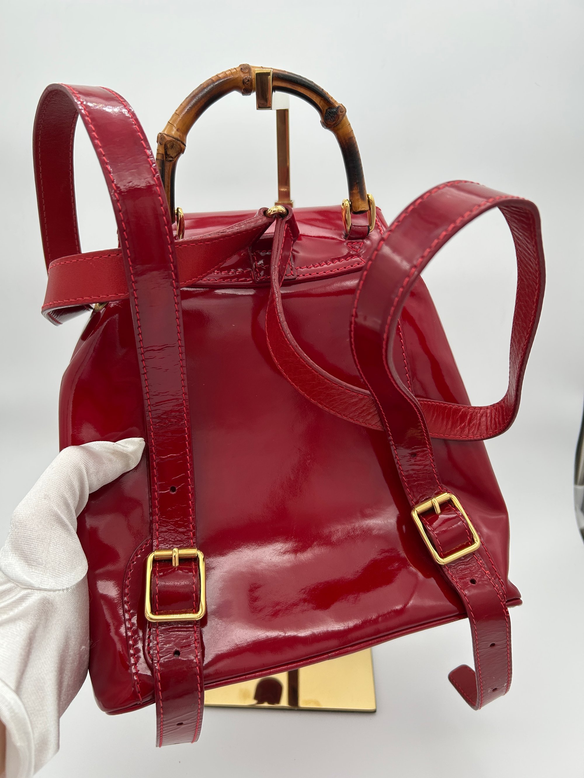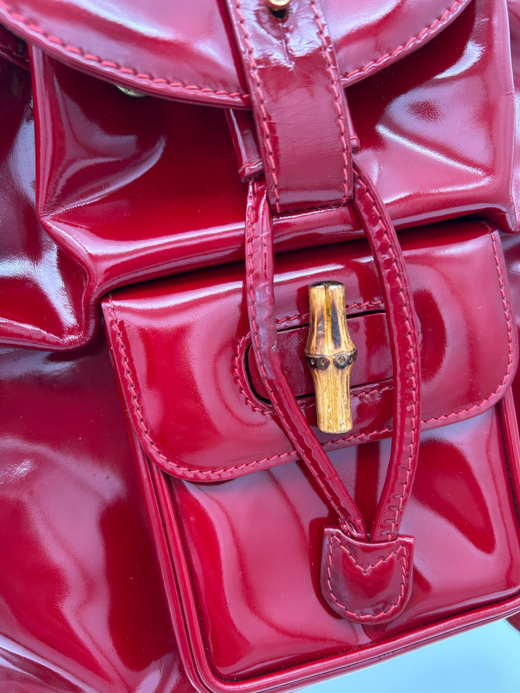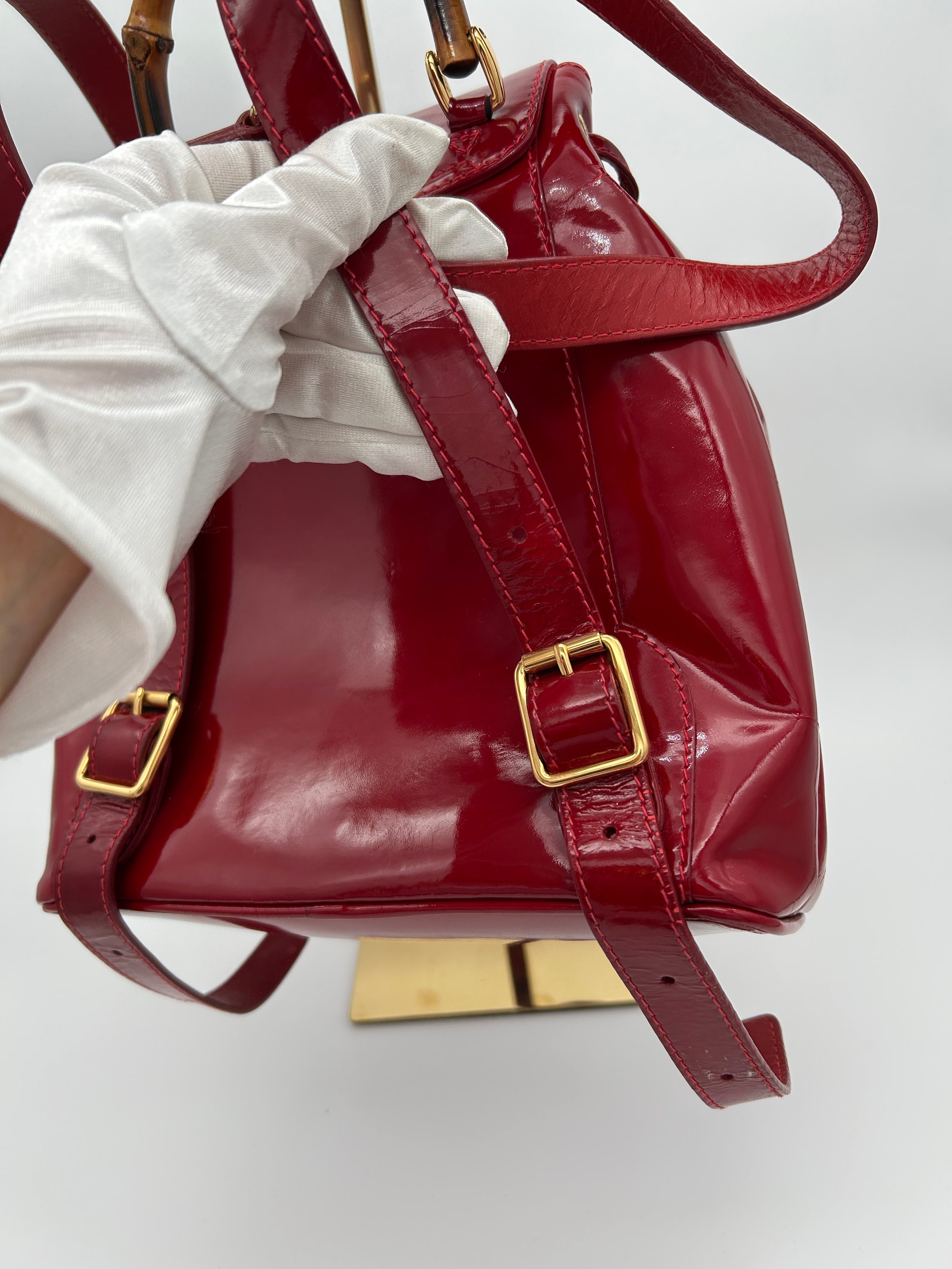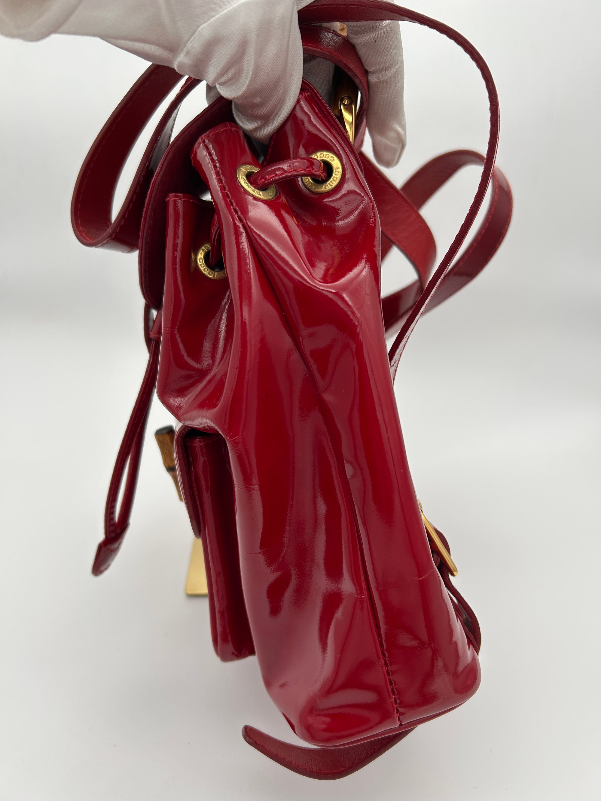 Gucci Bamboo Red Patent Leather Backpack Small