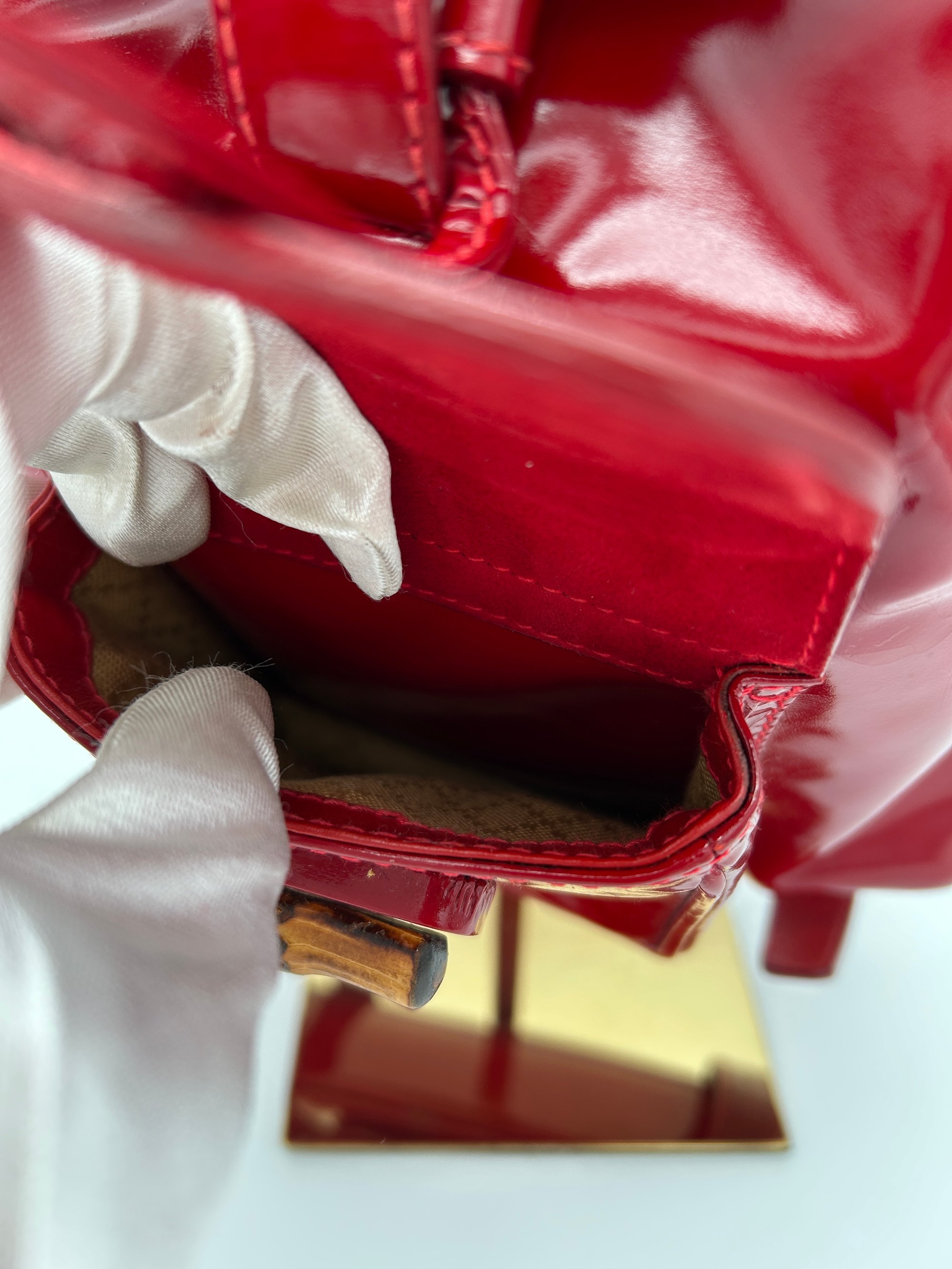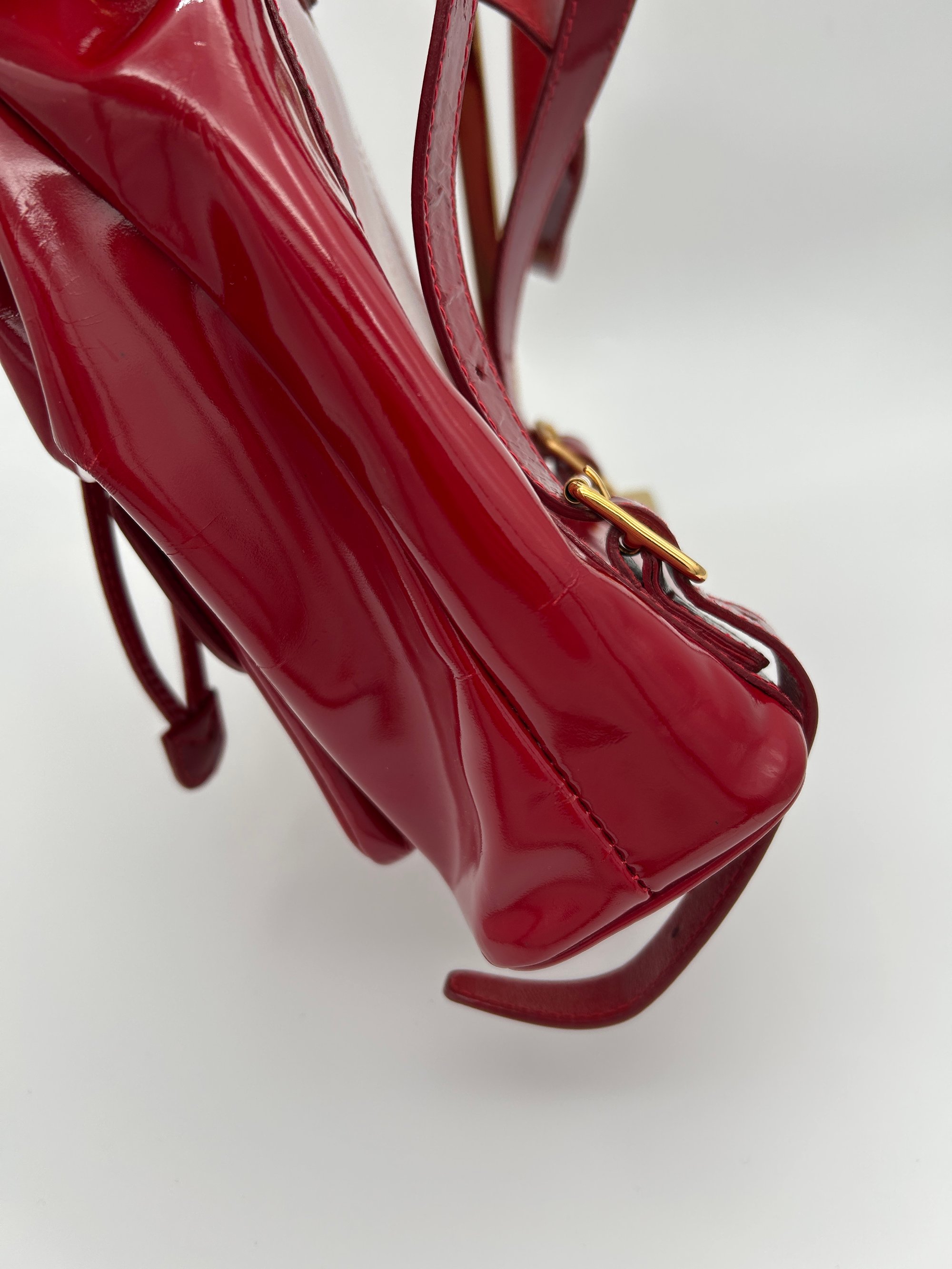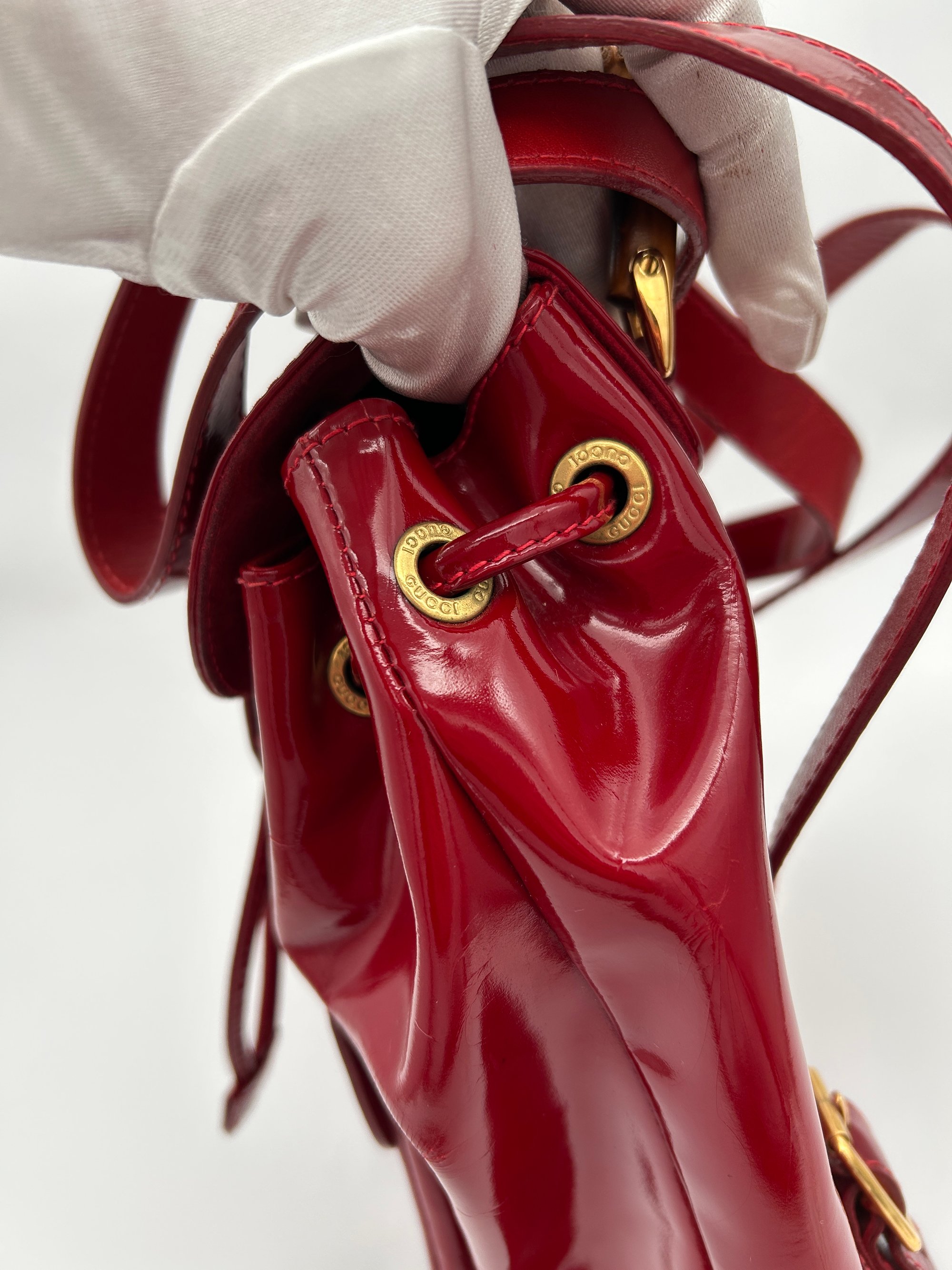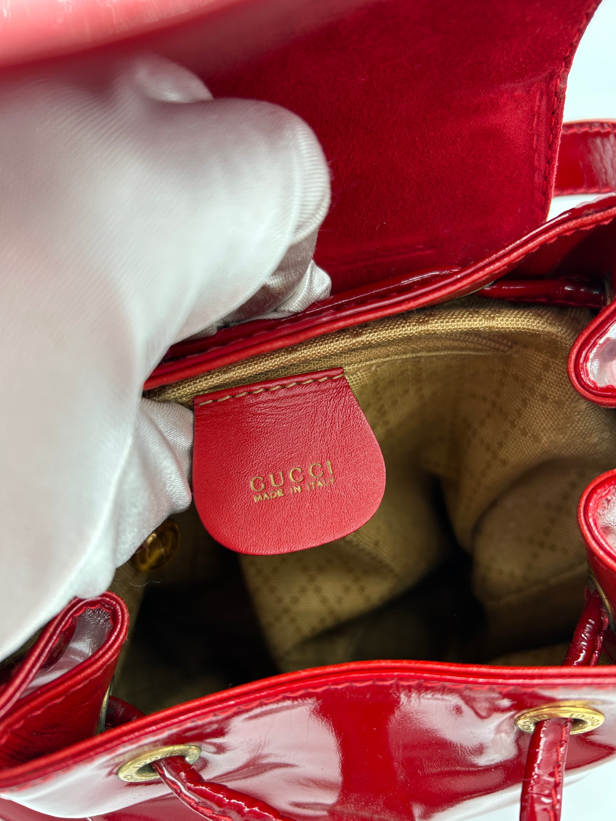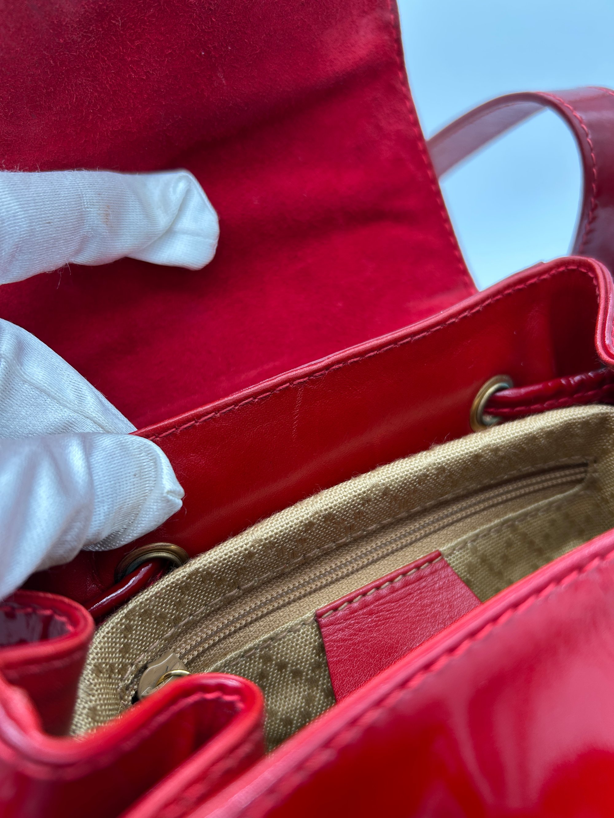 Gucci Bamboo Red Patent Leather Backpack Small