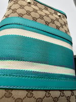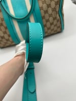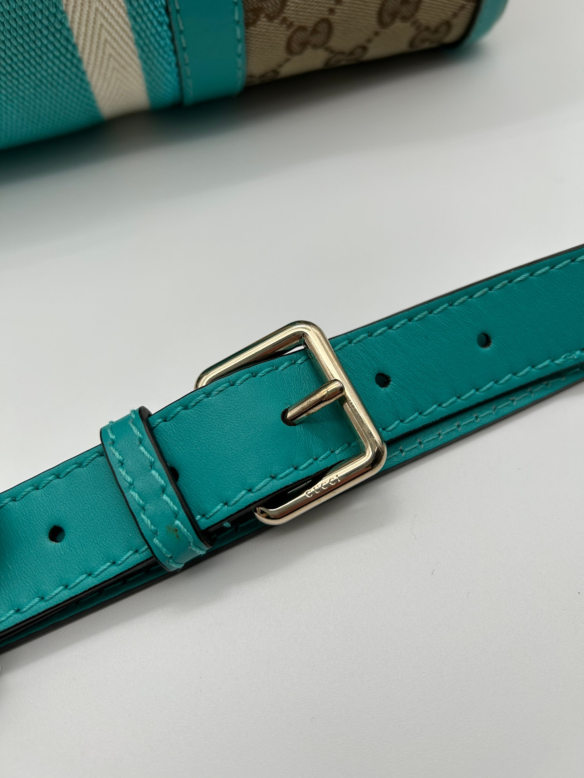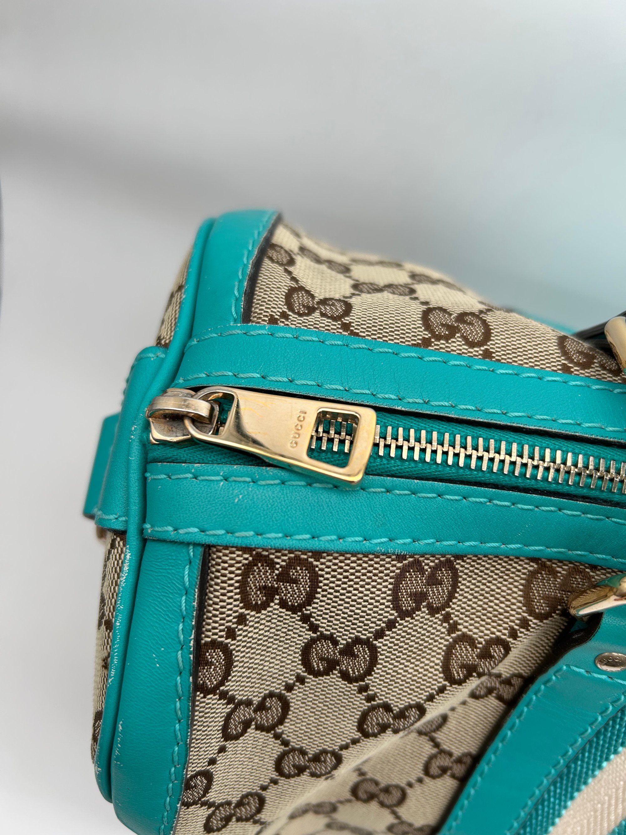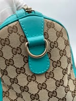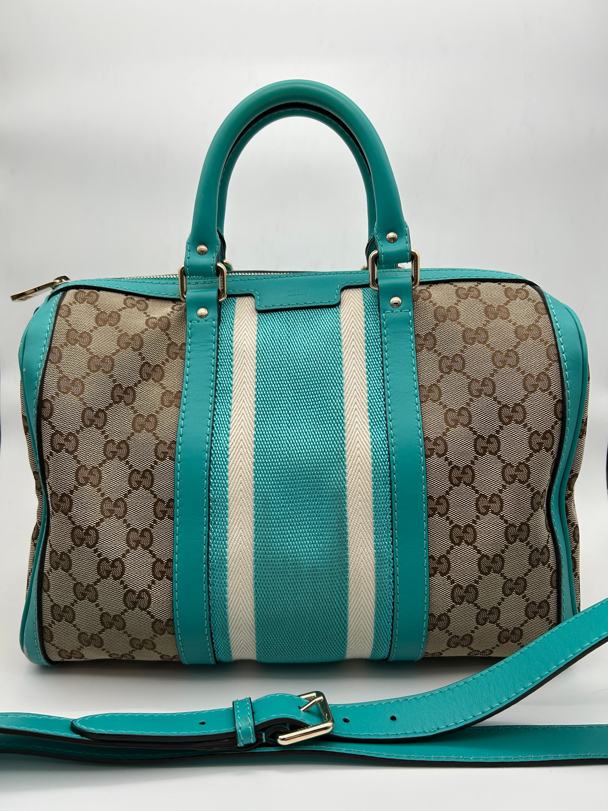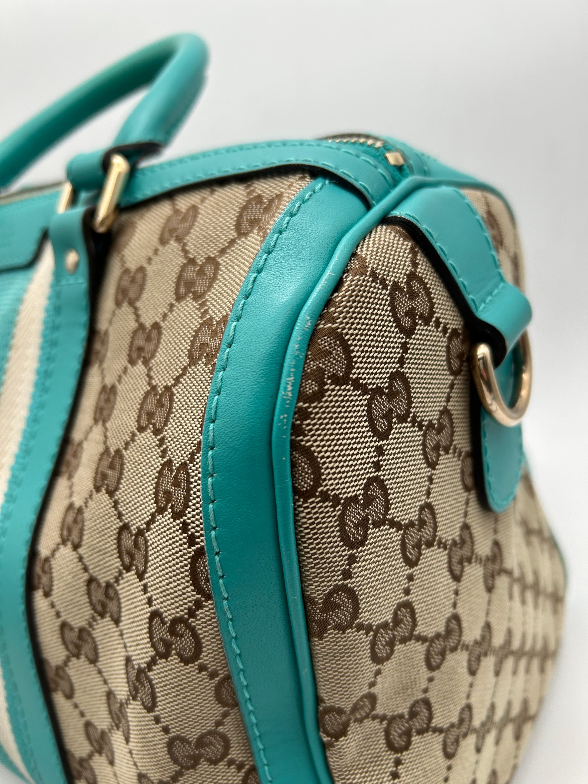 The canvas is free of any tears or holes. The metal hardware has some slight discolouration. All four bottom corners have some scuffing on the leather. The leather handles have a few small scratches. The material on the base of the bag has some water staining. The inside is very clean and has no odour but does have one stain around the opening of the bag.