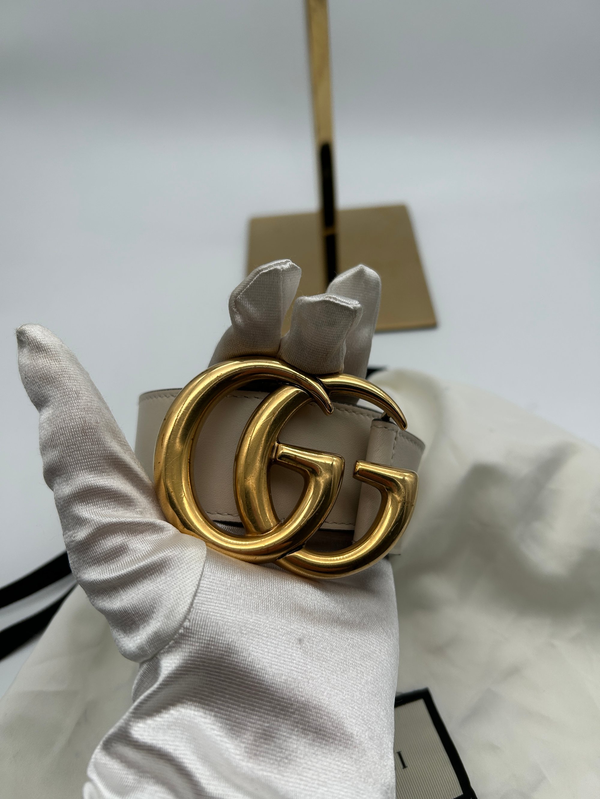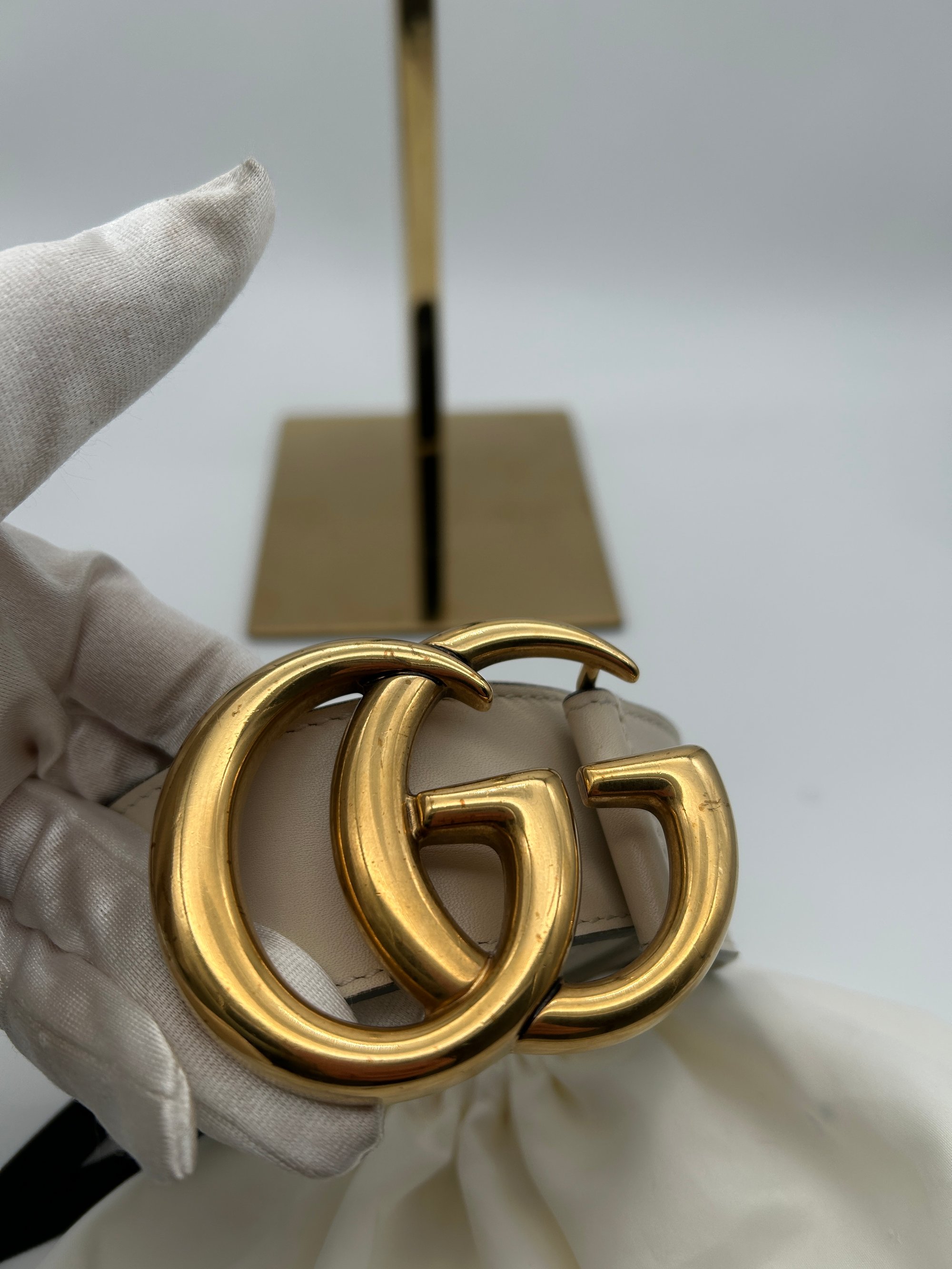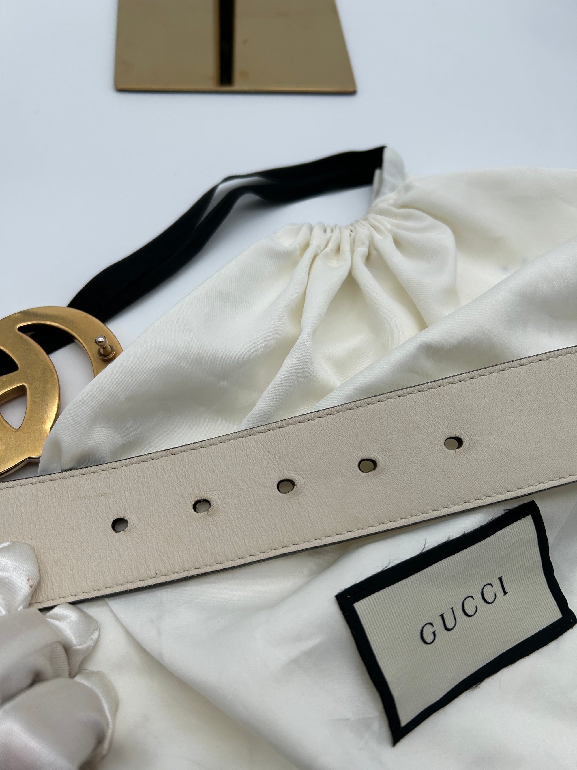 Gucci Gold GG Buckle White Leather Women’s Belt