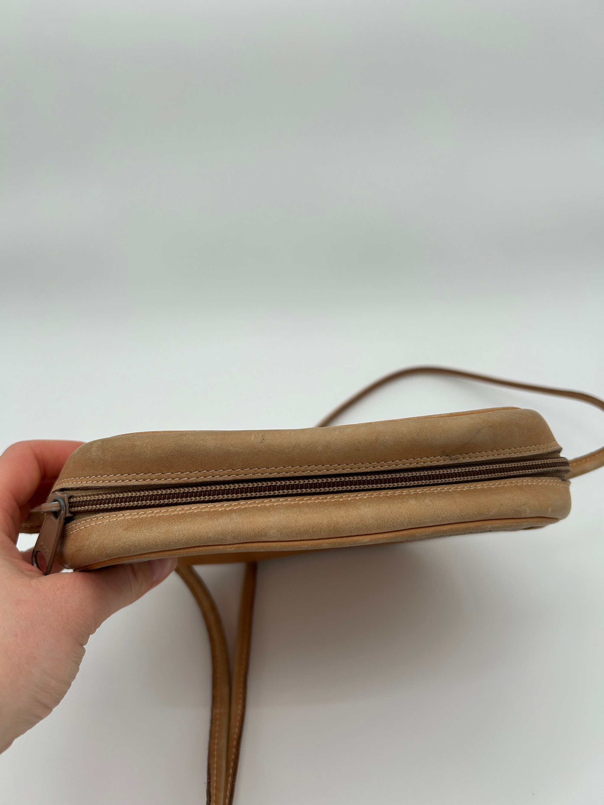 There are some scratches and rubbing on the leather, on the exterior. The leather strap has some creasing. The zipper is fully functional. The inside is very clean and there is no odour.