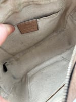 This bag is in very good shape. There is some slight rubbing on the piping around the bag. There is some discolouration on the leather, on the back of the bag. Some scratches on the metal hardware. The leather strap is in very good condition. The inside of the bag has some minor staining but no odour.