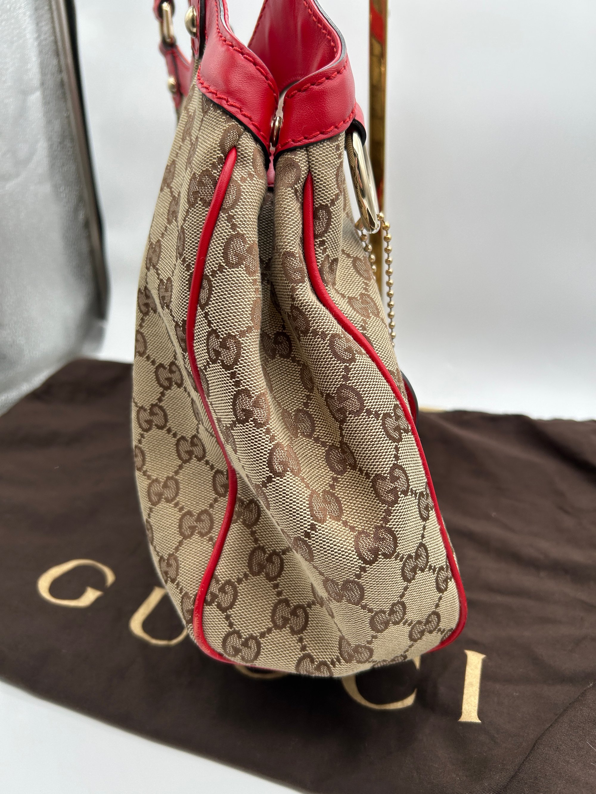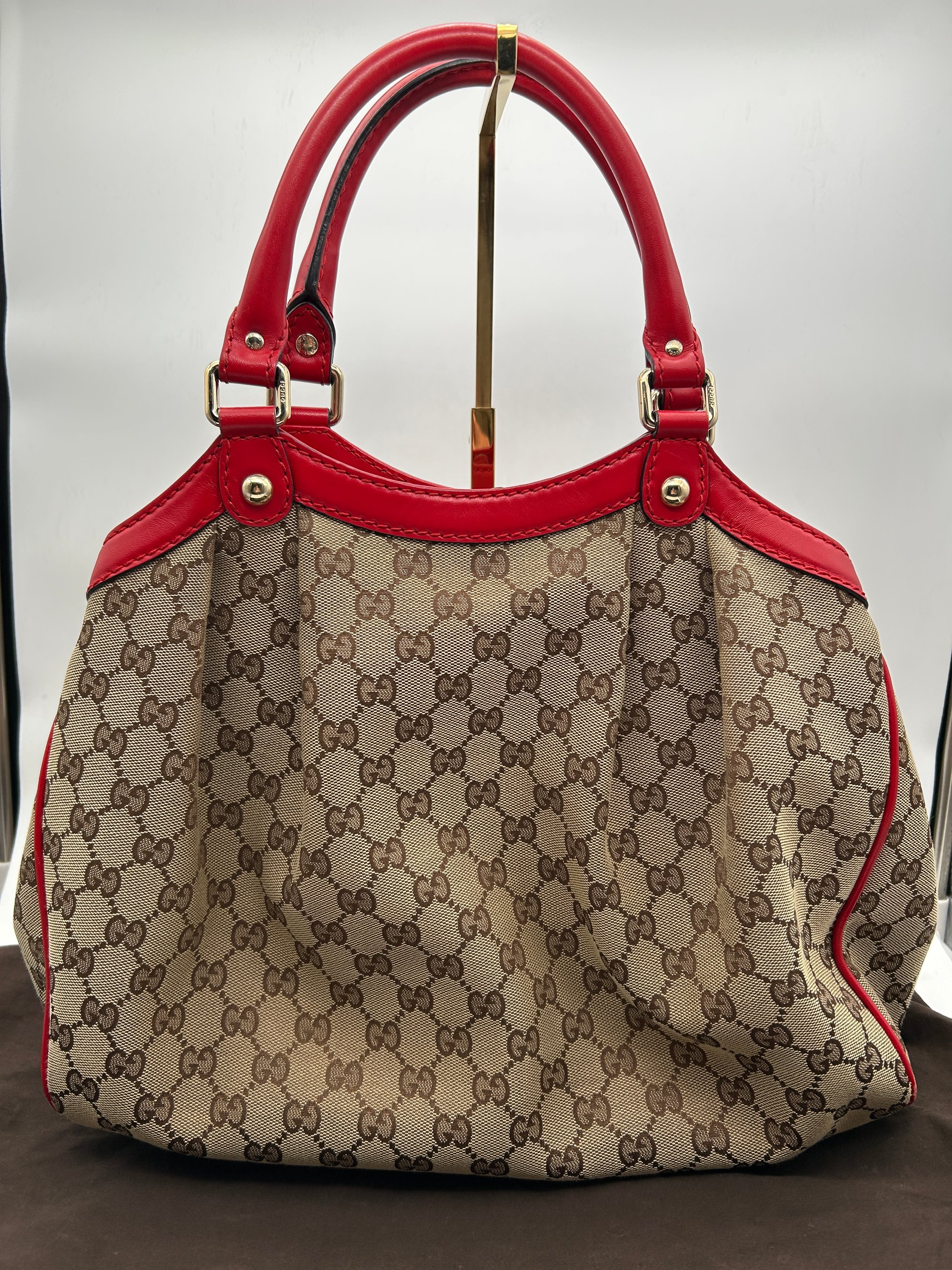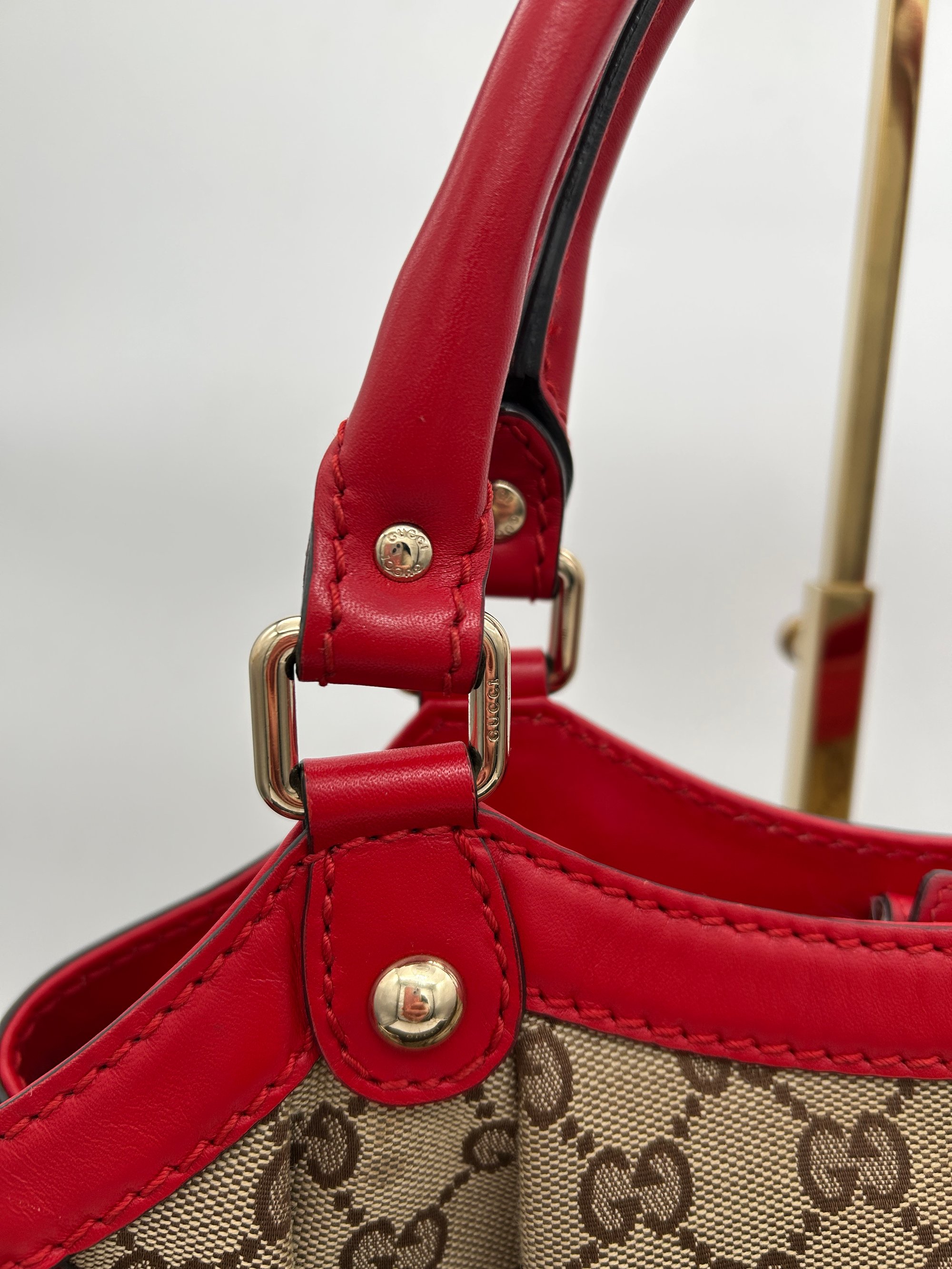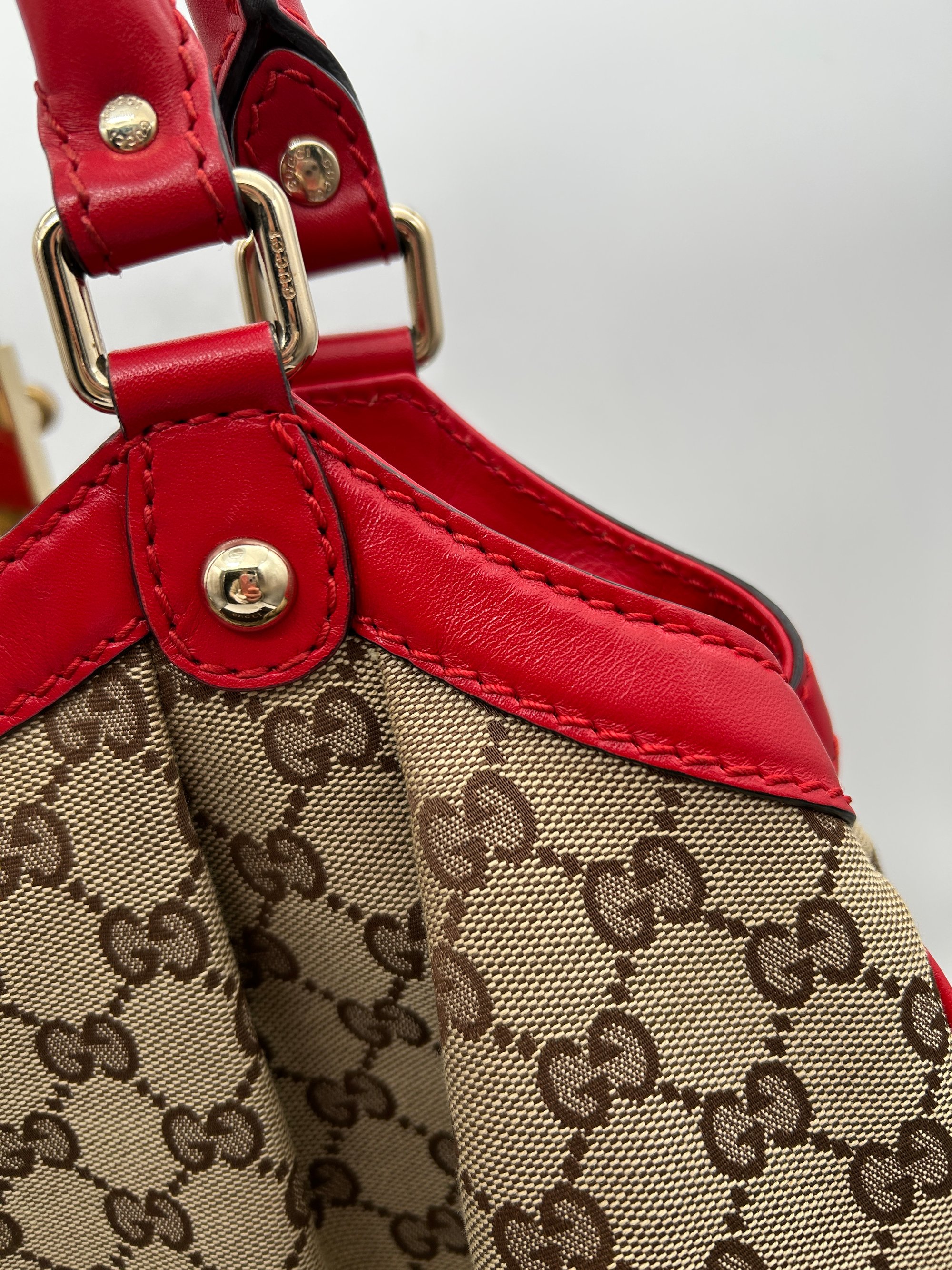 Gucci Sukey GG Canvas Red Leather Top Handle Shoulder Bag