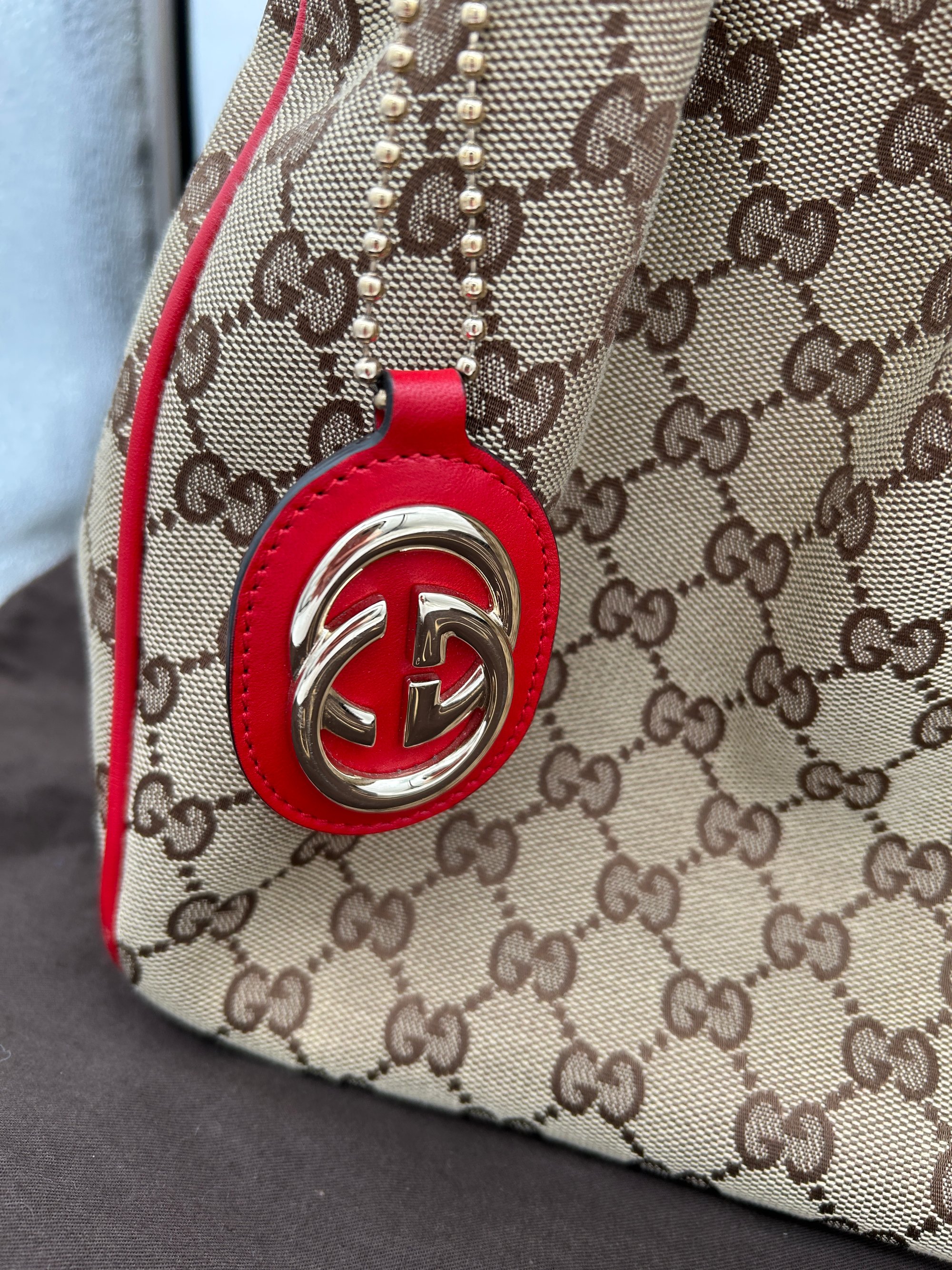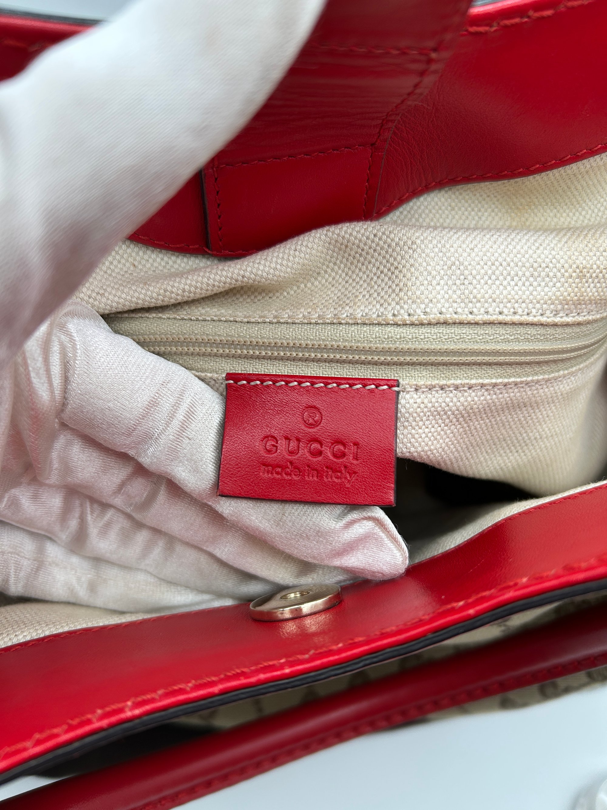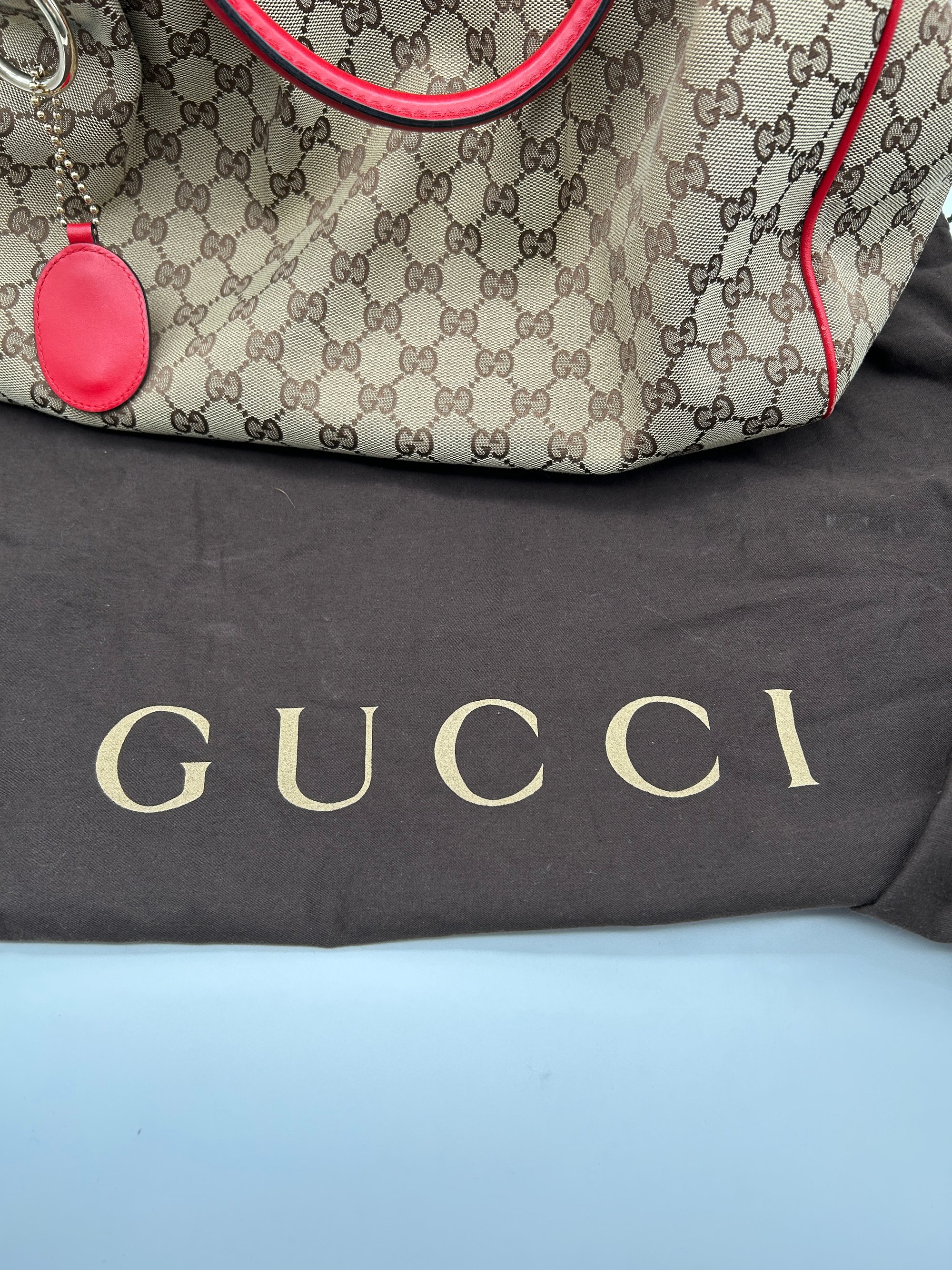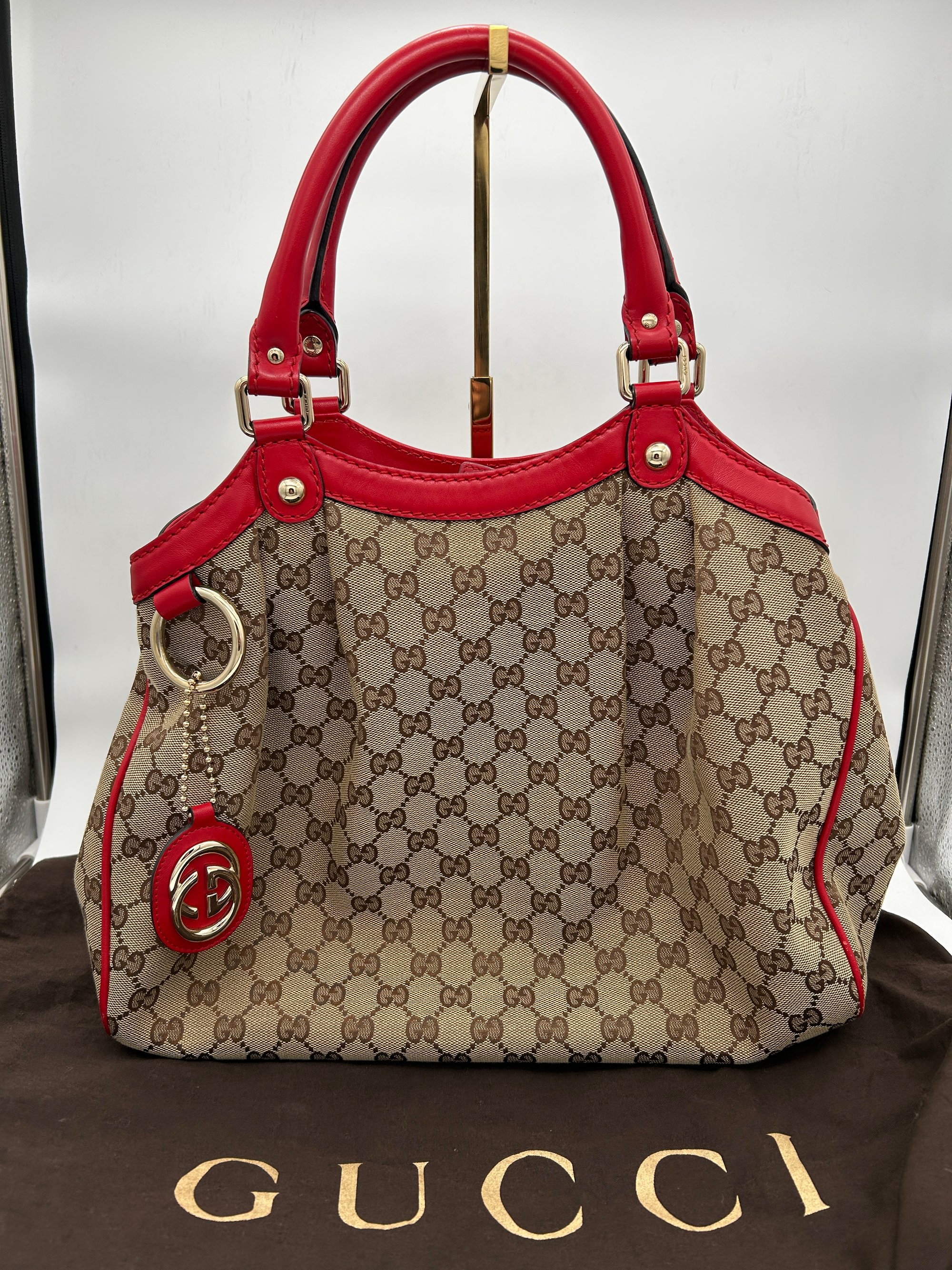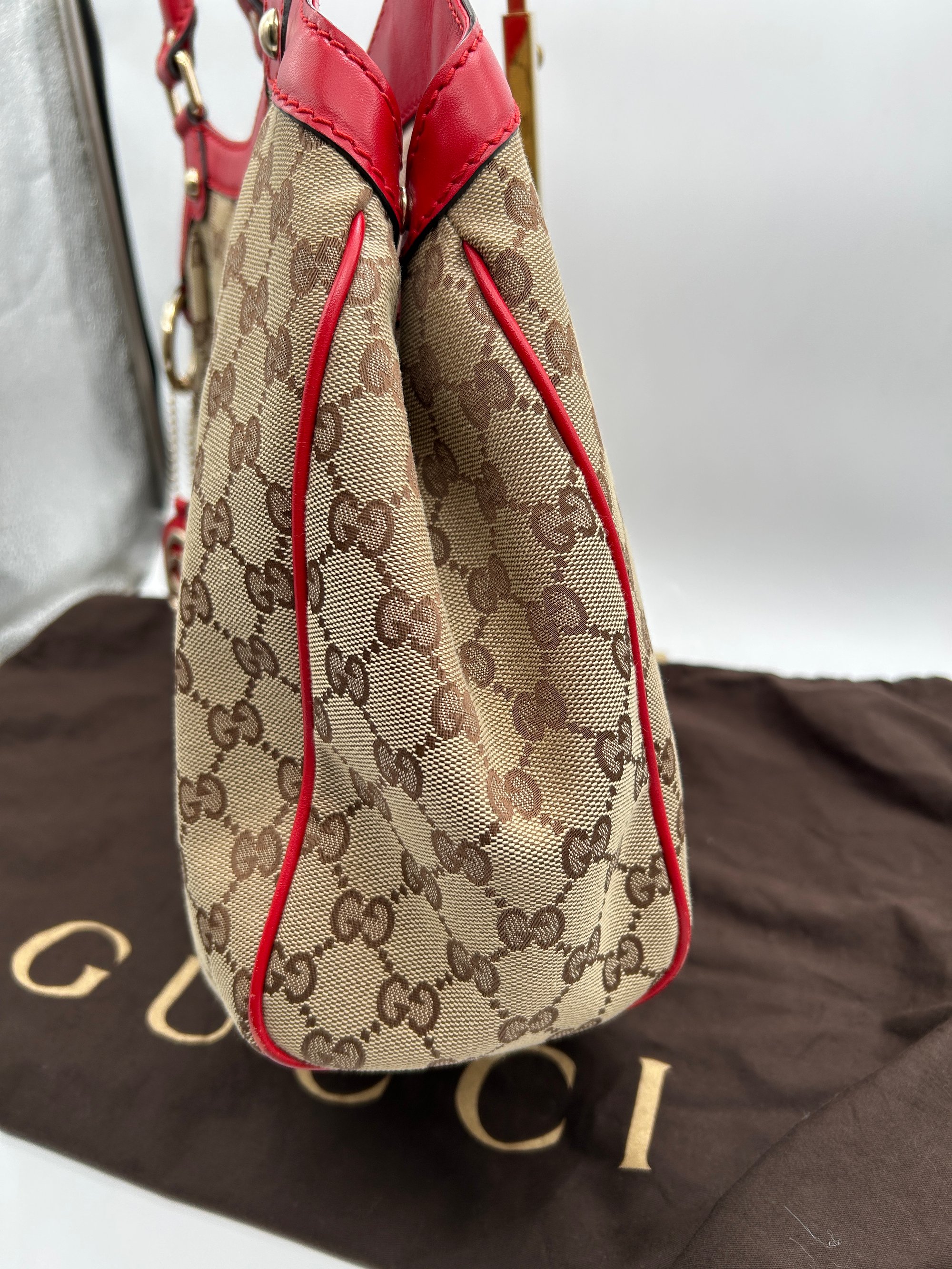 Gucci Sukey GG Canvas Red Leather Top Handle Shoulder Bag
