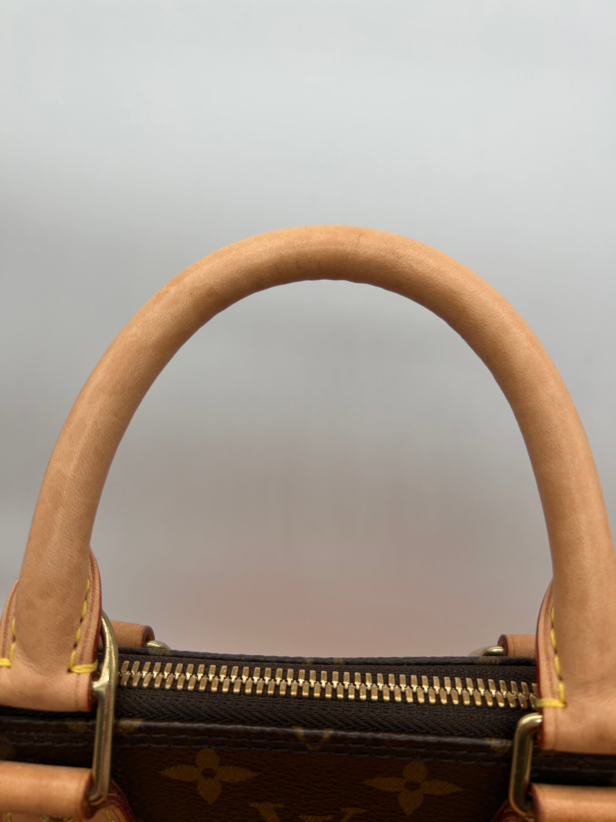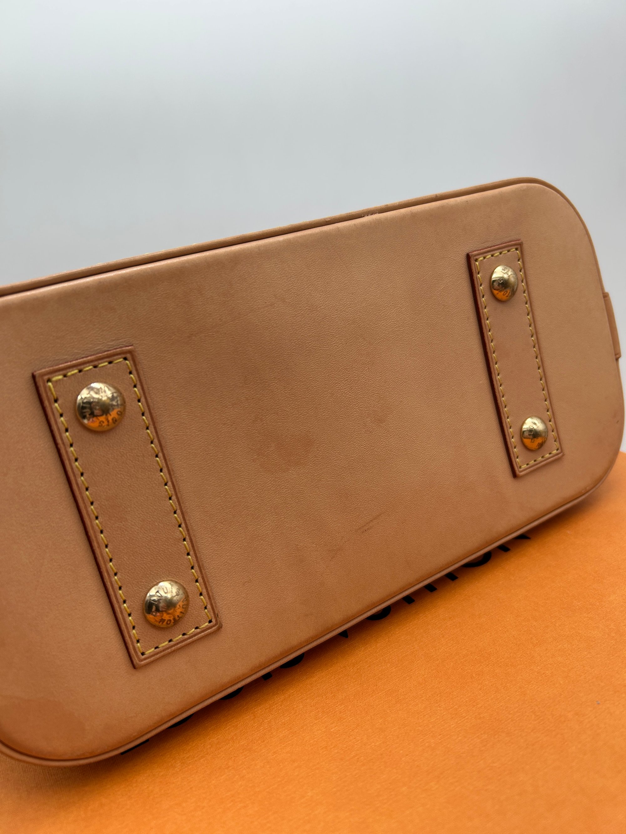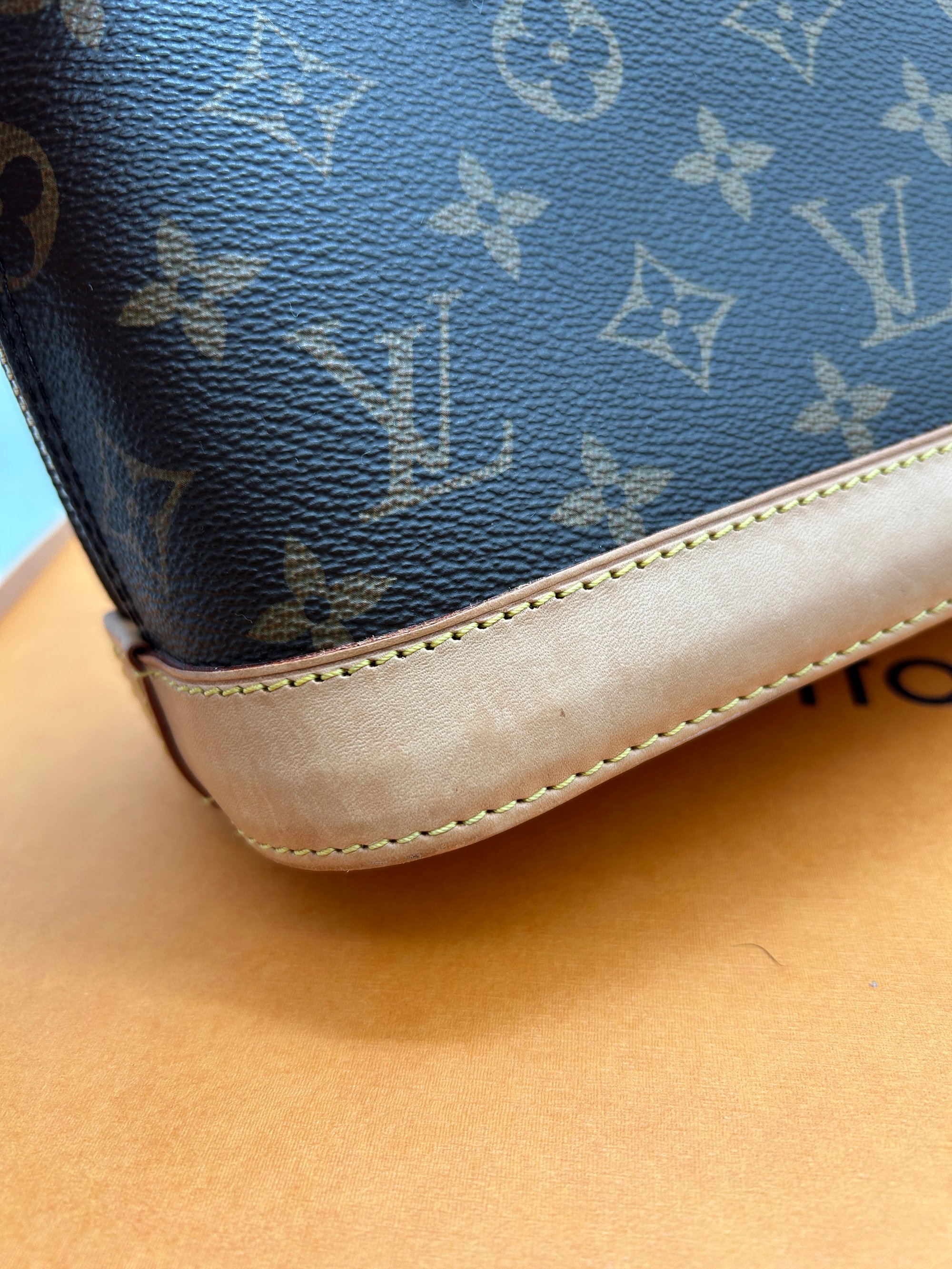 The canvas is free of any or holes or cracks. The Vachetta leather parts have some water marks and rubbing due to wear. Some of the metal hardware has some discolouration. The inside is very clean and has no odour.