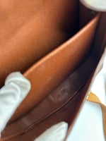 The leather parts of the bag have some water marks and scratches. The leather strap has some cracks & creasing. The canvas is free of any cracks or tears. The material inside the bag opening has some colour change & wear. The inside doesn’t have an odour.