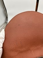 The canvas is free of any cracks or tears. The leather has some creasing, water marks, scratches and discolouration. The leather opening of the bag has some cracking due to age and wear. The metal hardware also has some tarnishing and discolouration. The inside is very clean but the inside pouch does have some material wear and the zipper is stiff to open/close.