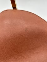 The leather has some darkening, scratches and rubbing on come parts. The metal hardware has some discolouration. The inside is very clean but the inside pocket has some material wear and the pocket zipper is stiff to open/close.