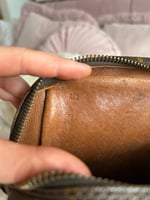 There is some wear on the leather piping and around the canvas strap connectors. The inside of the bag has some signs of wear. The strap is in very good condition.