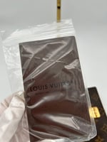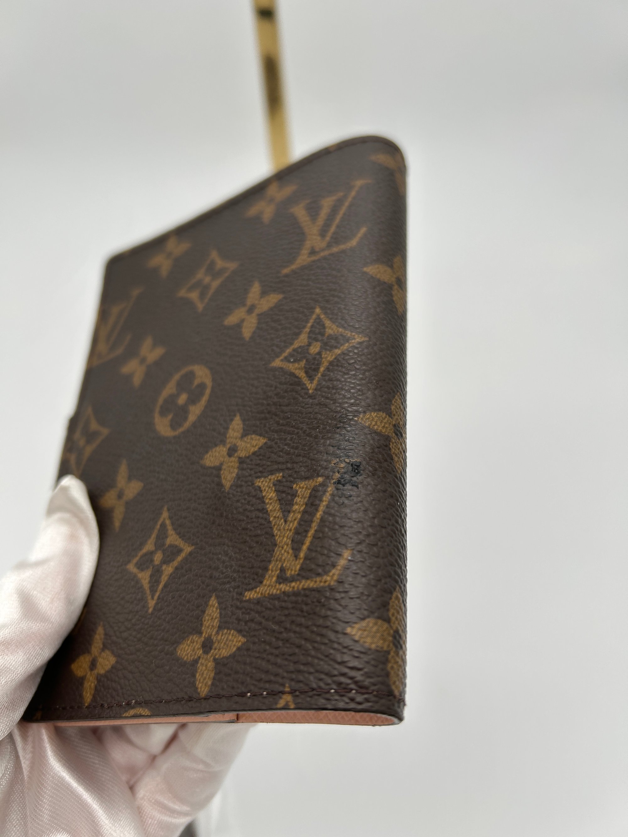 There is one black mark on the canvas at the back. The metal clasp opening has some discolouration and scratches. The inside has a few small marks.