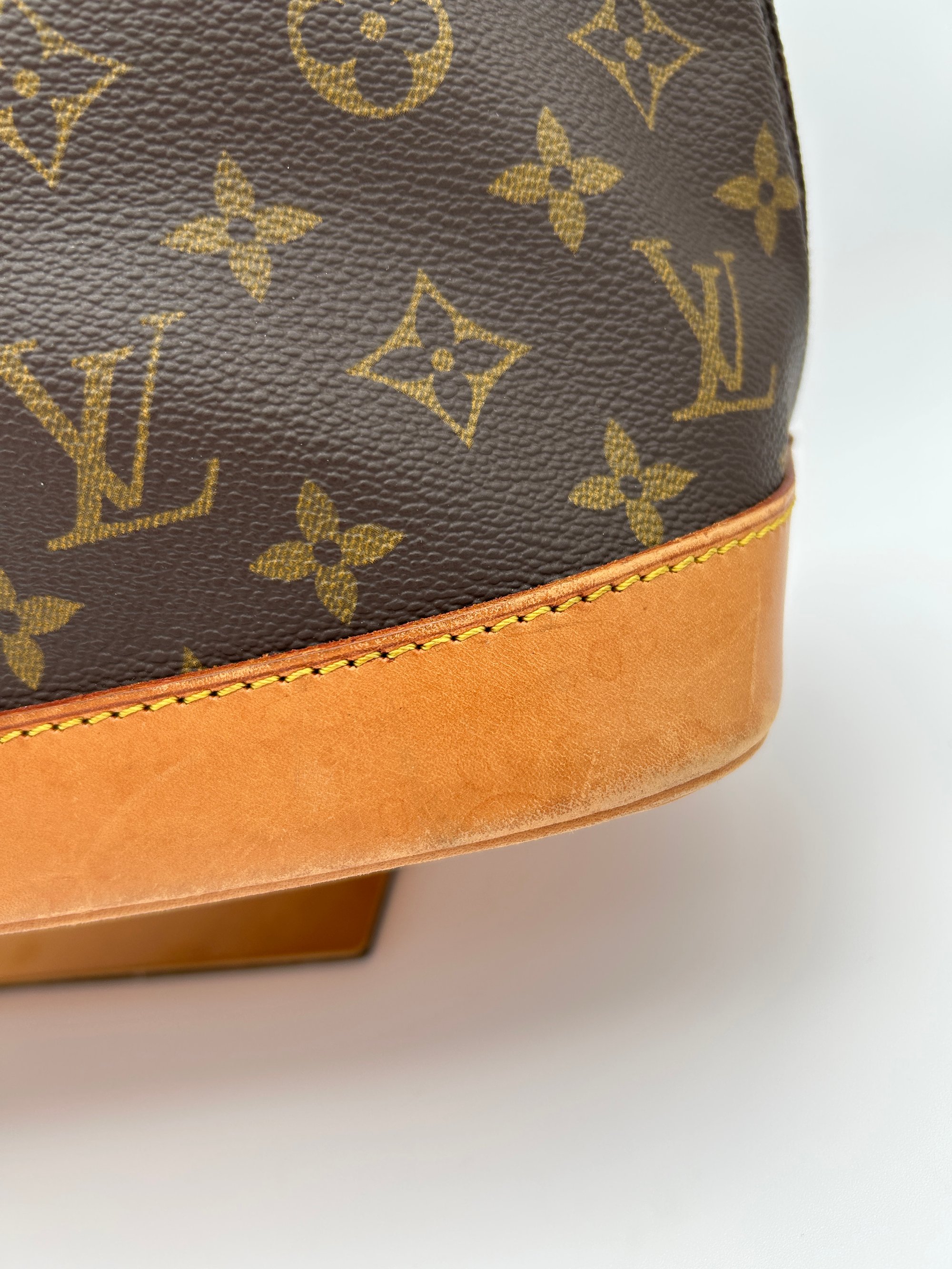 The leather has some water marks, scratches and rubbing on some areas. The gold hardware has some discolouration. The canvas has lost its shape slightly due to its age. The inside is very clean and has no odour. 2