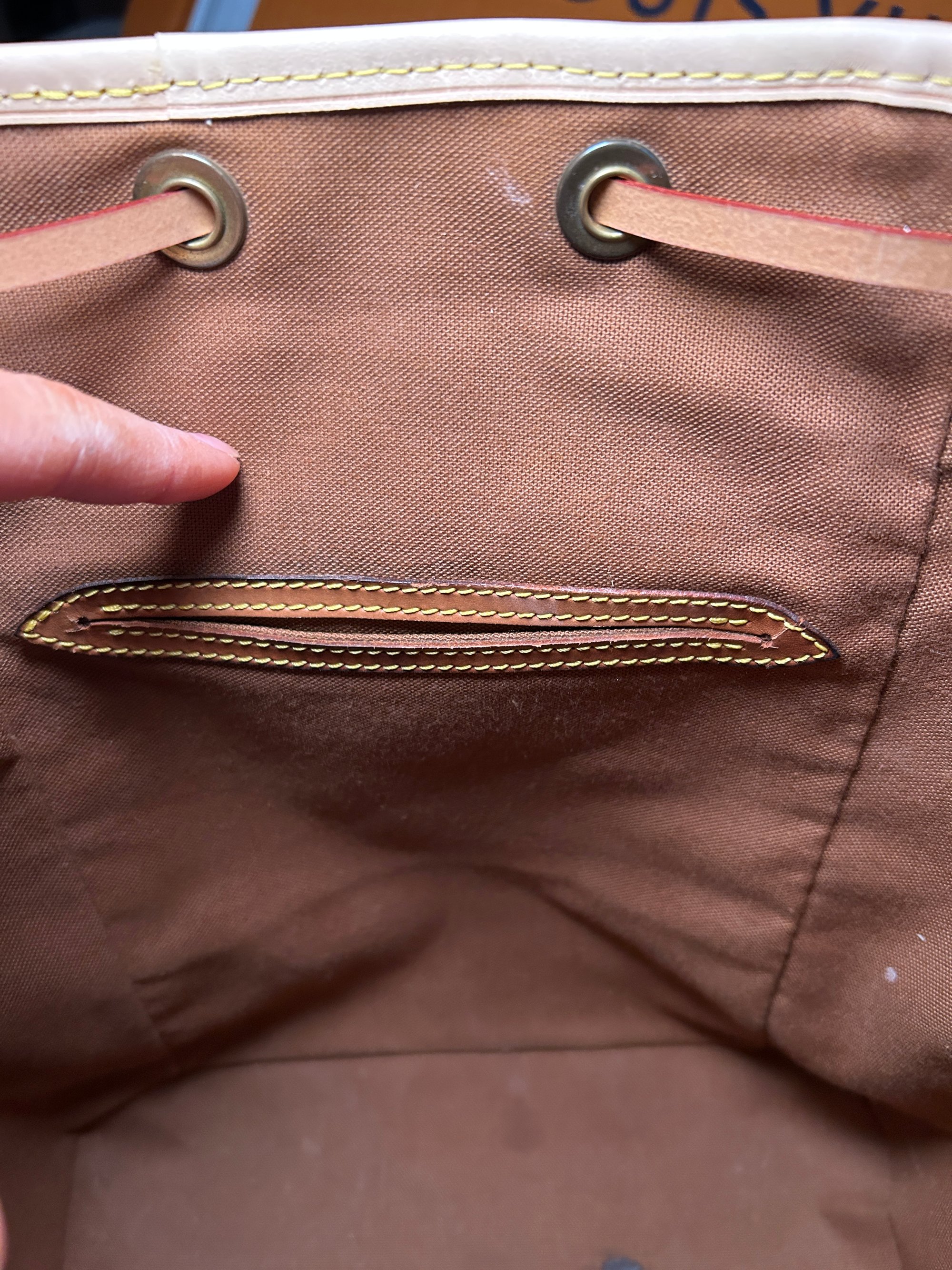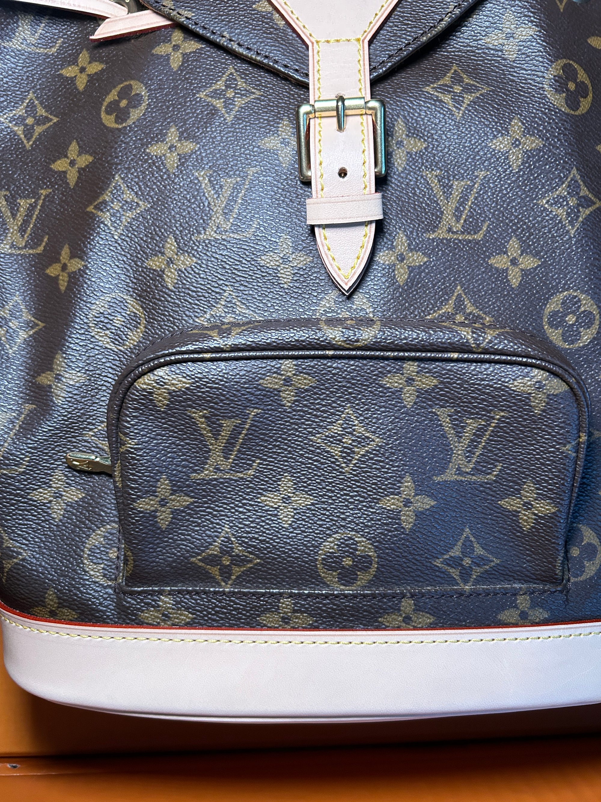 This bag has brand new leather and metal hardware. There is one small mark on the canvas above the pouch, at the front of the bag. There is a couple of small marks inside the bag but no odour.
