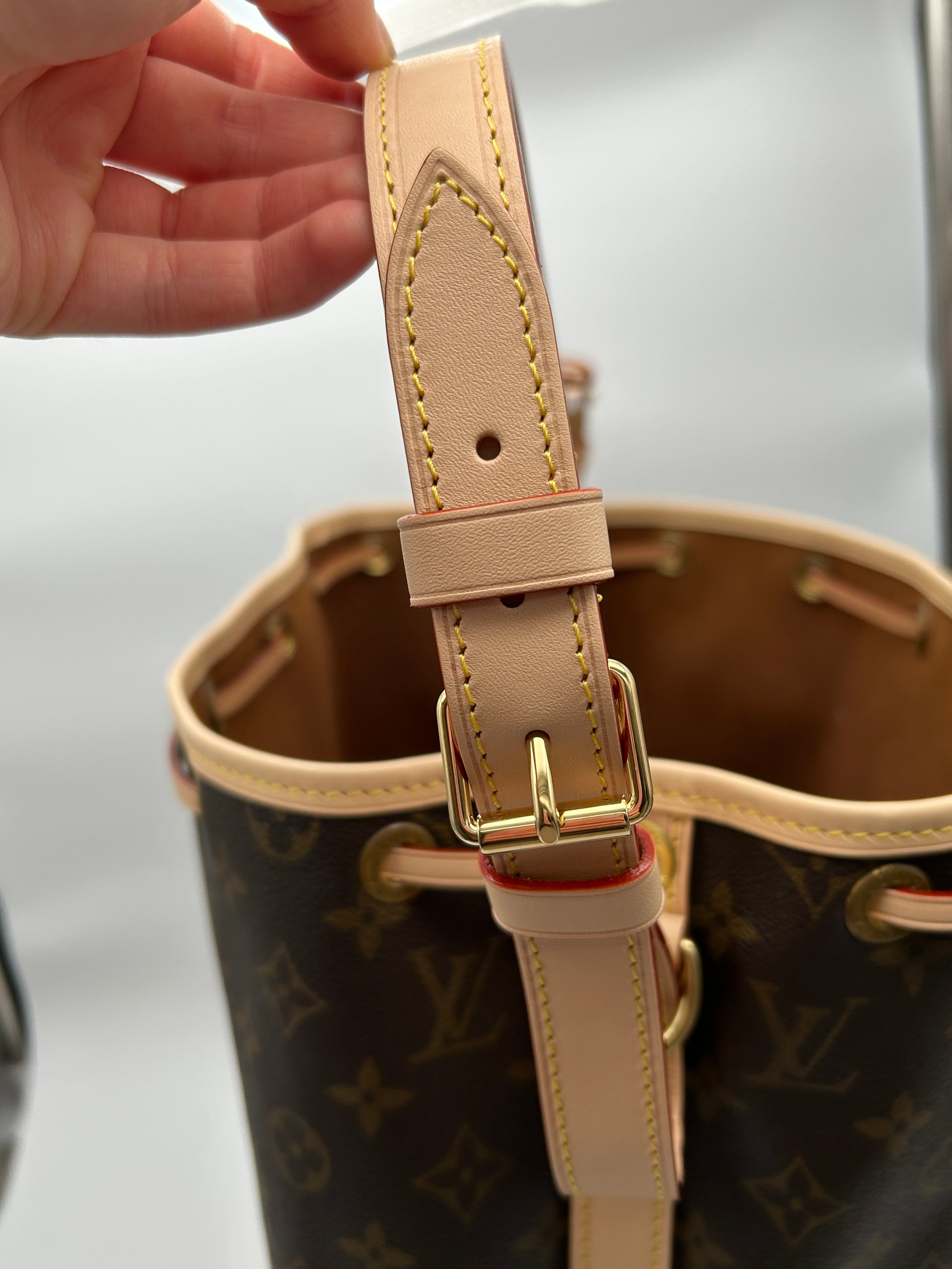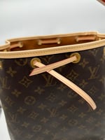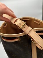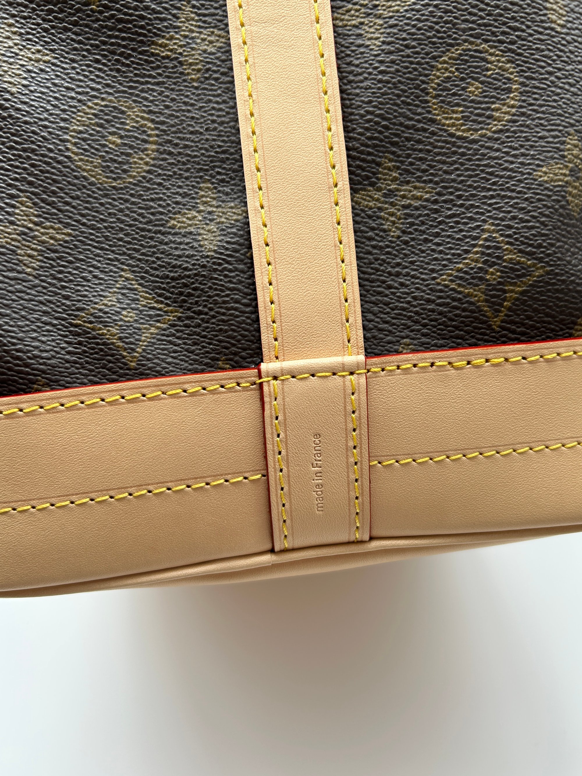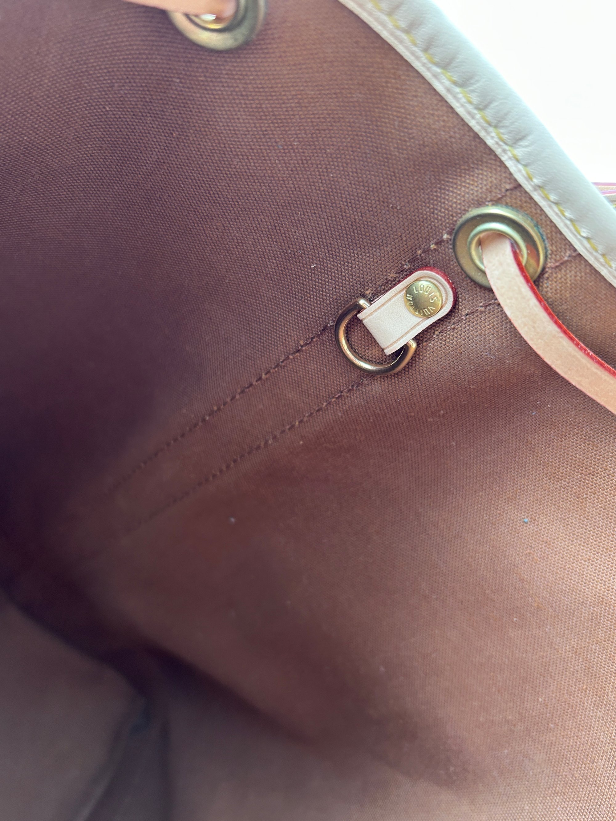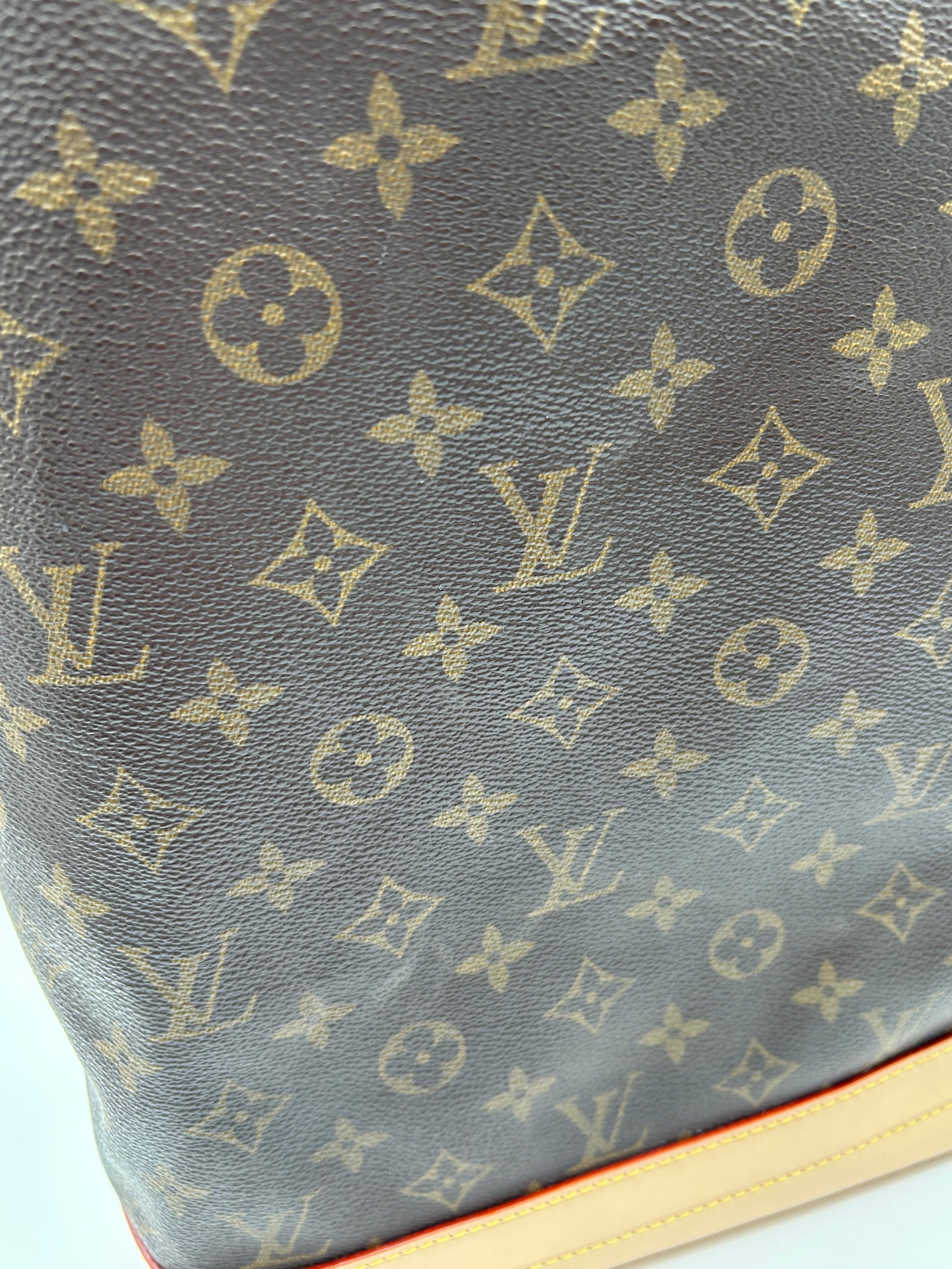 The leather parts have been replaced by Louis Vuitton. The monogram canvas has a few light marks. The inside has some water marks but no odour.