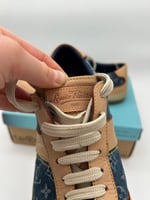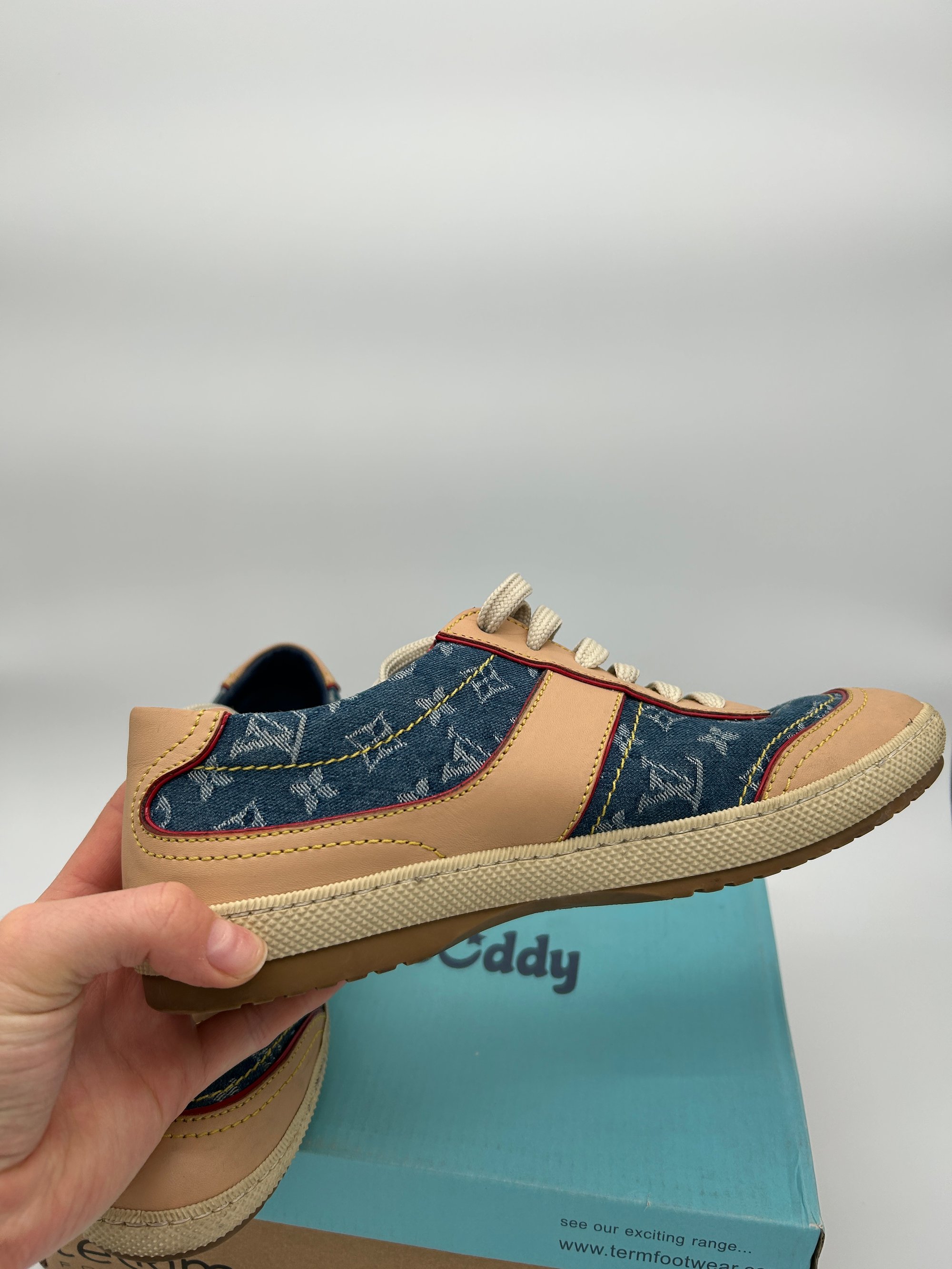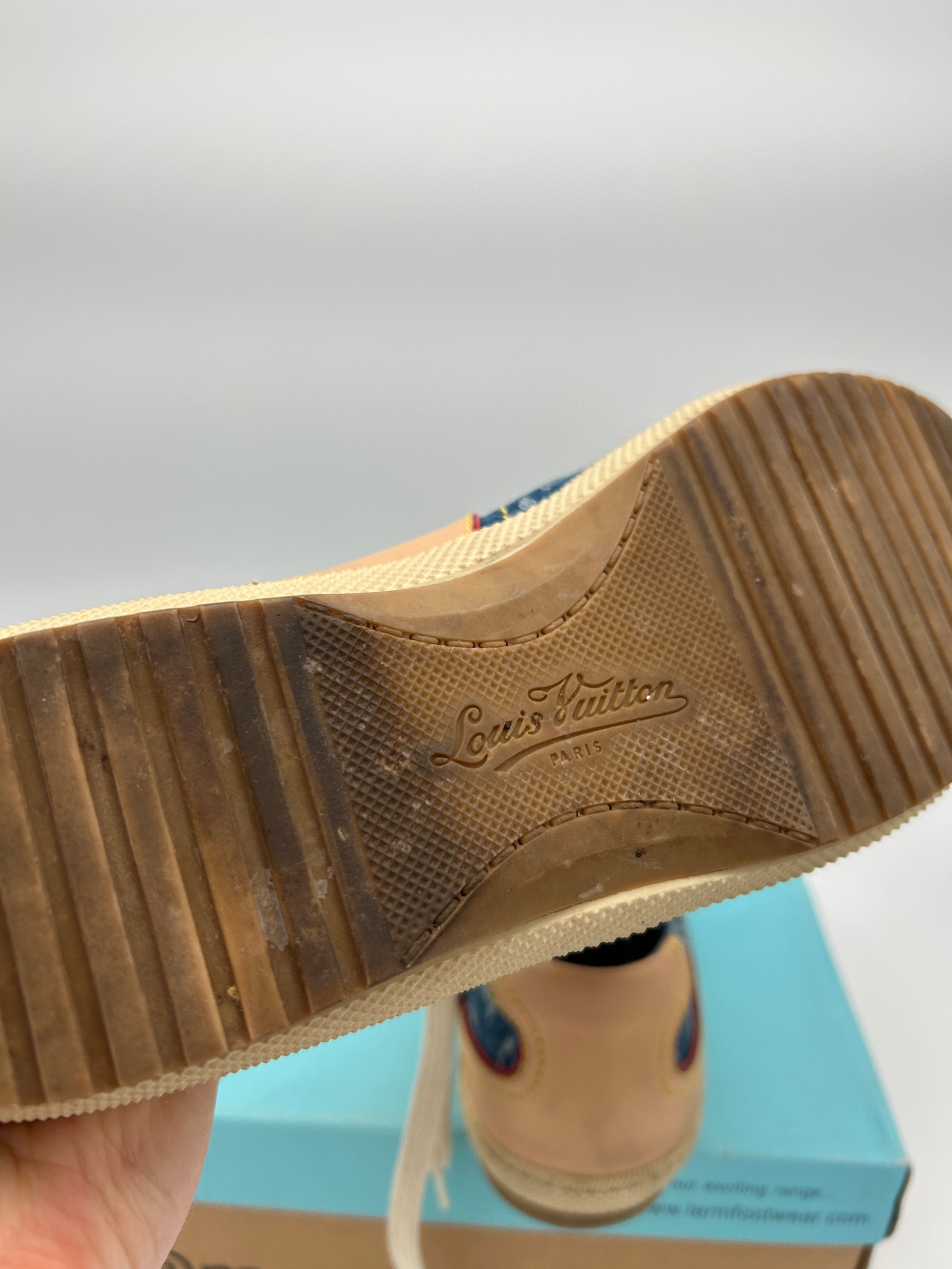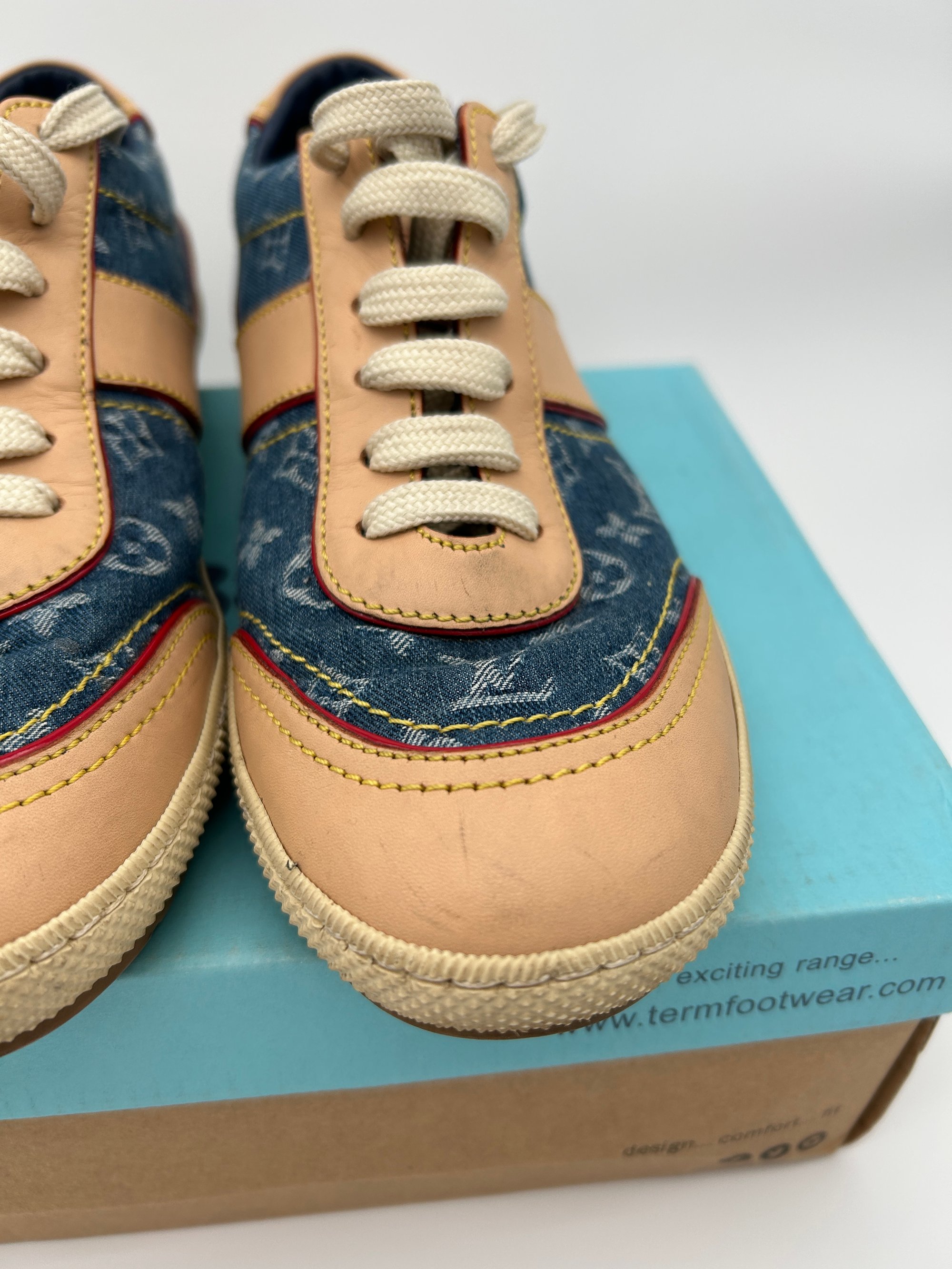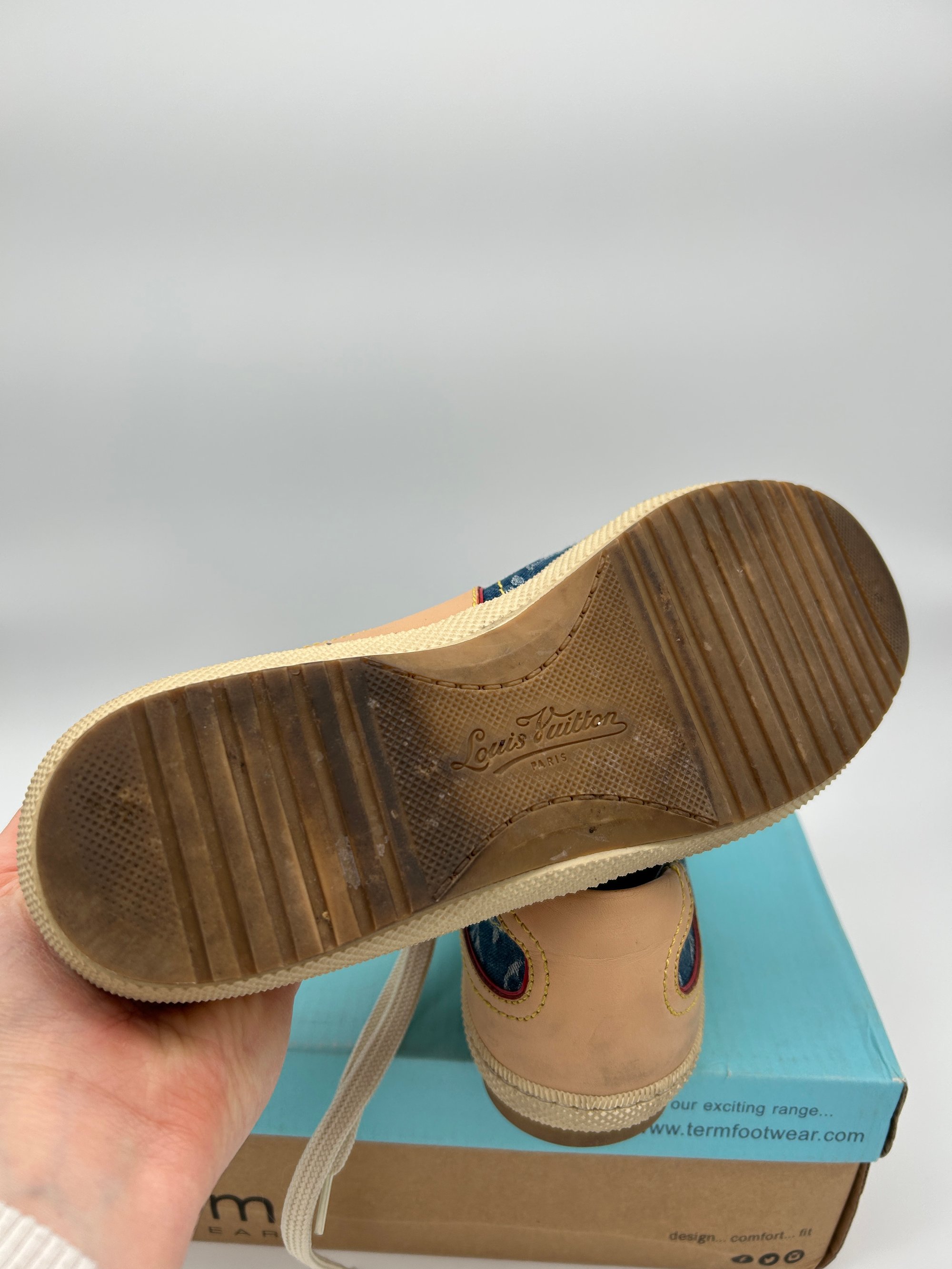There are some scratches & marks on the beige parts of the shoes. The soles have some wear and discolouration.